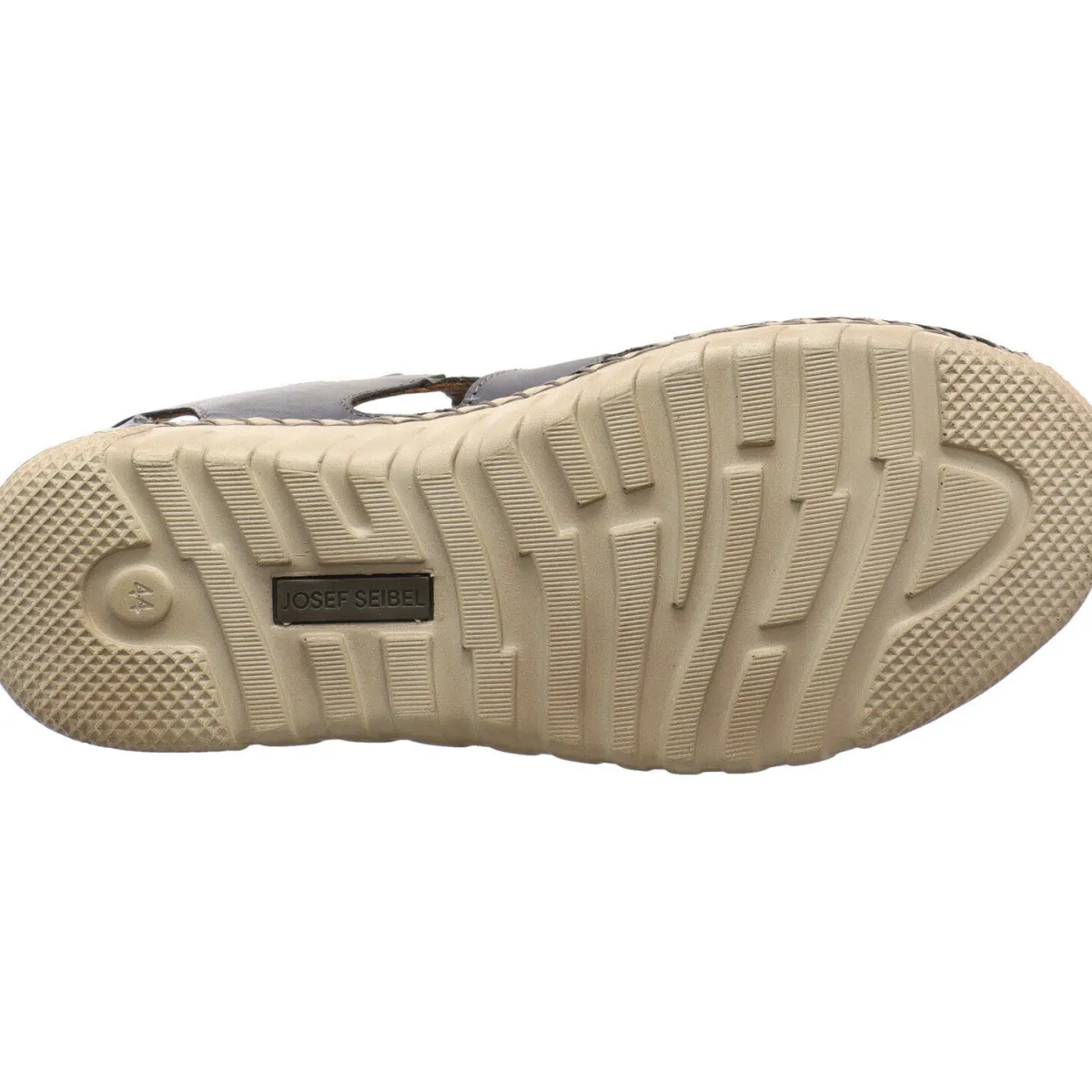 Der Schuh wurde aus hochwertigem Echtleder in Blau gefertigt und an der Seite mit einer Marken-Prägung versehen. Dank der vielen Cutouts ist der Schuh angenehm luftig und bequem an warmen Sommer Tagen. Der seitliche, verstellbare Riemen ermöglicht einen komfortablen Einstieg und das Echtleder Fußbett macht den Schuh besonders bequem. Die Innensohle ist als Wechselfußbett gearbeitet, was die Benutzung von eigenen Einlagen ermöglicht. Die Laufsohle ist hell abgesetzt und unterstreicht das sportliche Design.
