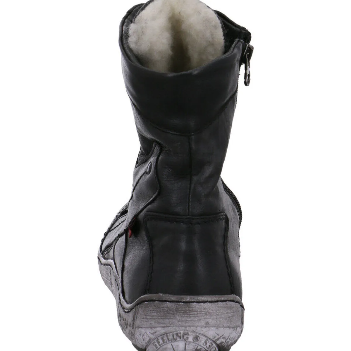 Das weiche Obermaterial besteht aus hochwertigem Echtleder in Schwarz und ist mit mehreren Ziernähten versehen.