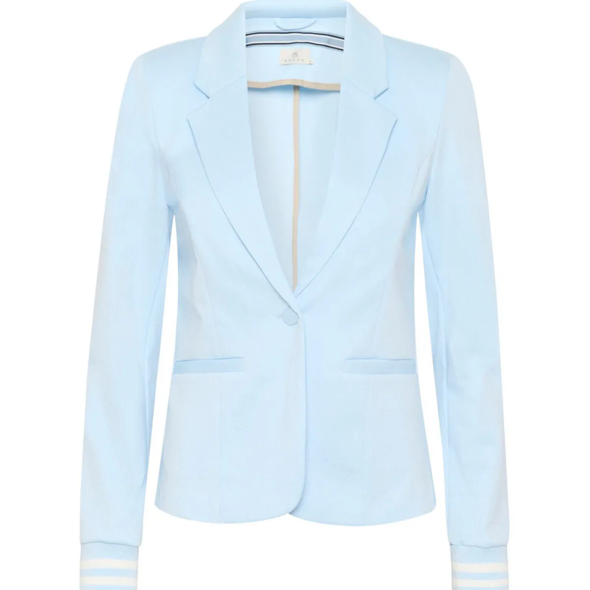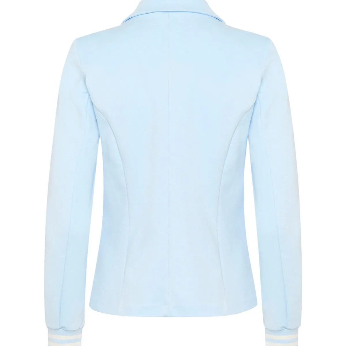 Das Modell in Blau ist durch die Rippstrickkante, mit Streifen an den Ärmeln eine tolle sportliche Alternative zum klassischen Blazer. Er hat einen Slim Fit Schnitt und Paspeltaschen.