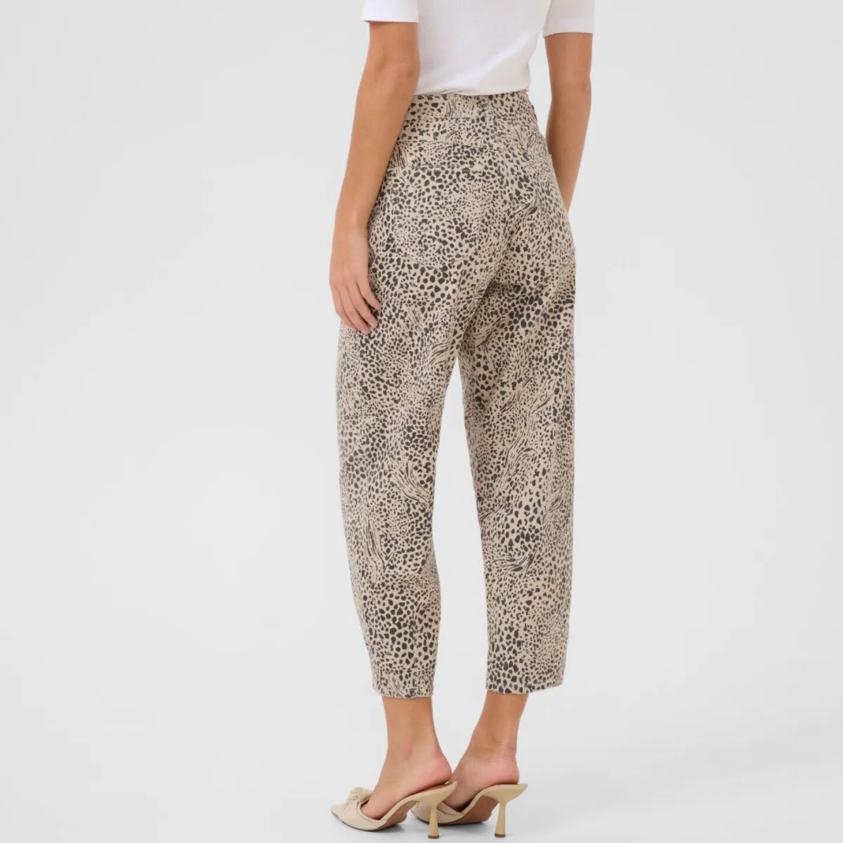 Seitentaschen sind vorhanden und auch auf dem Gesäß sind Taschen angebracht. Die Hose ist mit einer modischen Knöchellänge gearbeitet und wird das It Piece für deinen Sommer Look.