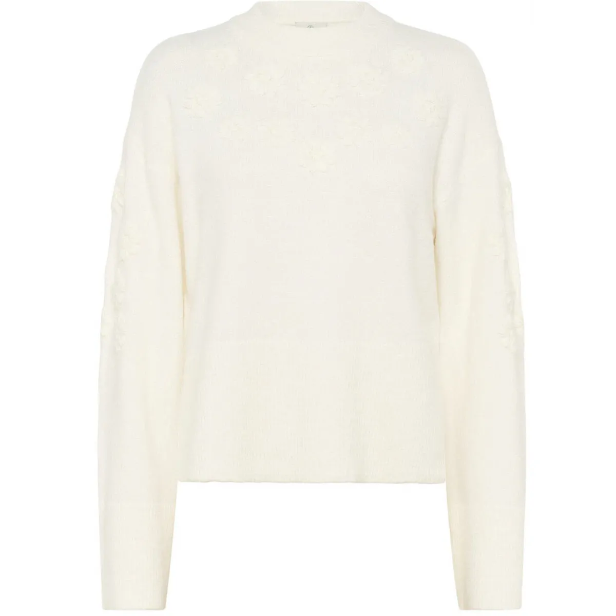 Das weiche Strickgewebe in Weiß ist mit einem Rundhalsausschnitt gearbeitet und hat weite, lange Ärmel. Auf der Vorderseite sind kleine Blumen aufgestickt, die ihm eine verspielte Note verleihen. Er ist mit Seitenschlitzen gearbeitet, diese verleihen zusätzlich eine schöne Optik und machen ihn besonders bequem.