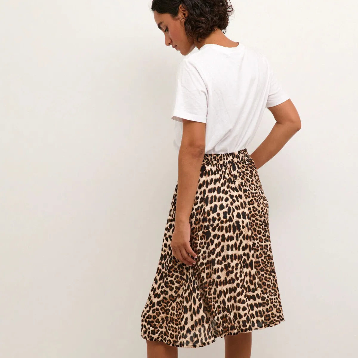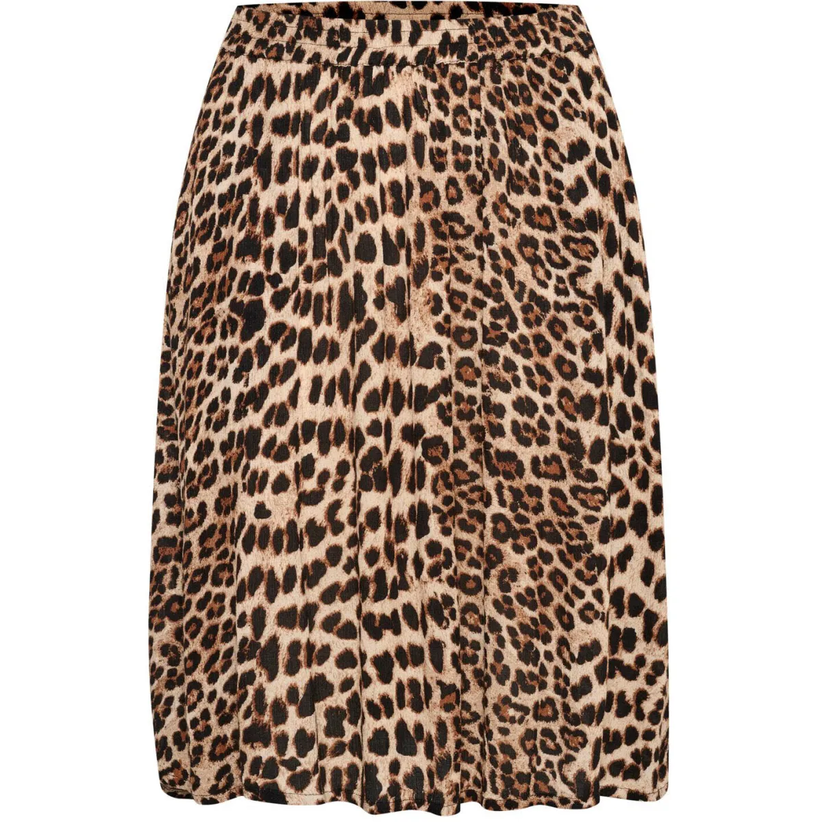 Der leichte Viskose Stoff ist mit einem Leo Animal Print in Braun verziert. Er hat eine elastische Taille und ist in A-Linie gearbeitet. Er hat eine Knielänge und praktische Seitentaschen und für uns ein Must Have für den Sommer den du super kombinieren kannst.