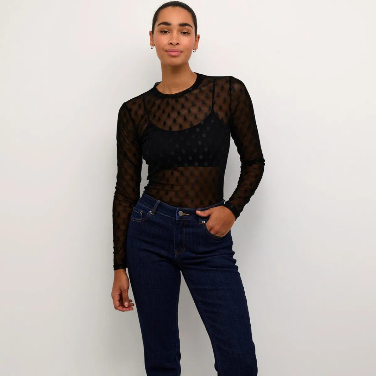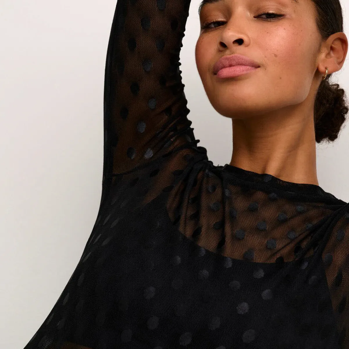 Das Highlight ist hier das Mesh Gewebe in Schwarz, welches mit kleinen Punkten beflockt wurde.