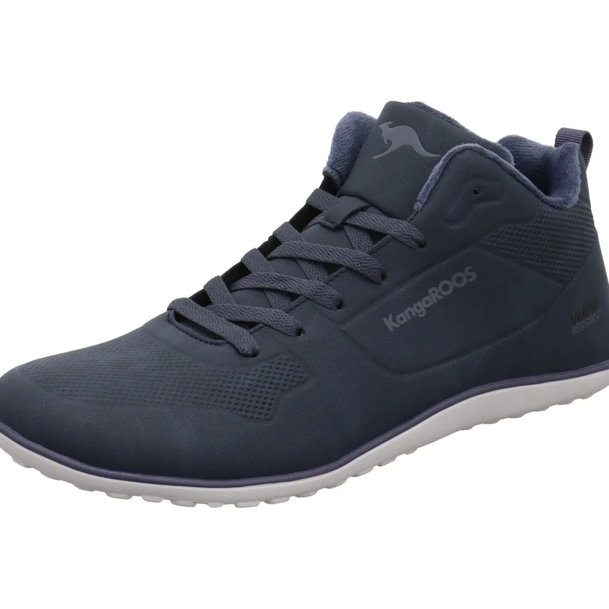 Er wurde aus Kunstleder in Blau gefertigt. Durch die Schnürung und die Lasche am Schaft ist der Einstieg ganz einfach.