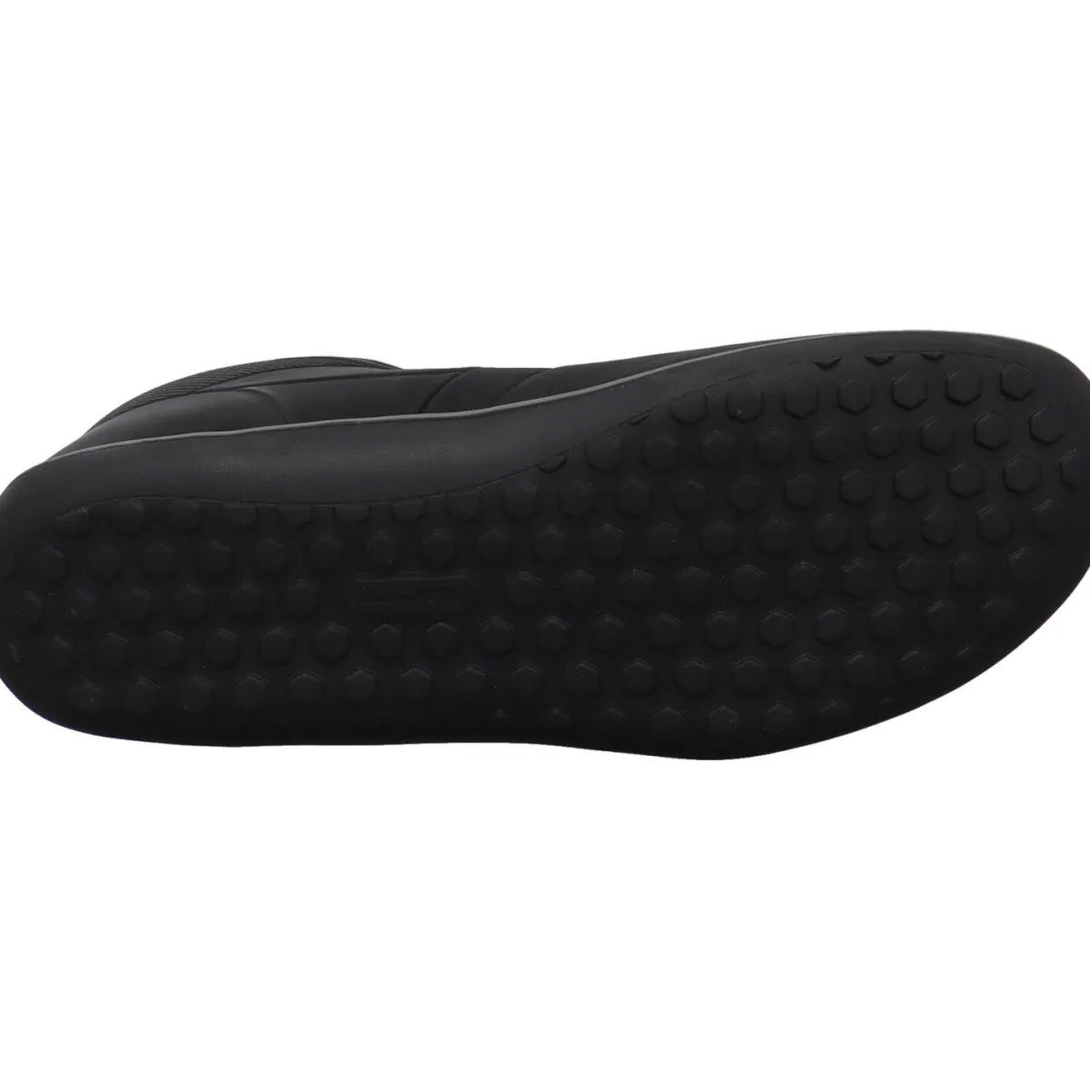 Er wurde aus Kunstleder in Schwarz gefertigt. Durch die Schnürung und die Lasche am Schaft ist der Einstieg ganz einfach.