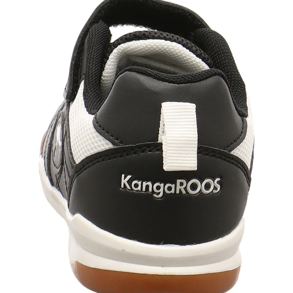 Der Kinder Hallenschuh wurde aus Kunstleder in Schwarz gearbeitet. Die Zunge und seitliche Parts sind aus Textil. Akzente in Weiß unterstreichen den Retro Look, er eignet sich für Mädchen und Jungen. Durch die Textillasche, die Gummischnürung und den Klettverschluss ist das An- und Ausziehen ein Kinderspiel. Das Textil Innenfutter und der gepolsterte Schaft sorgen für ein angenehmes Tragegefühl und die Innensohle ist als Wechselfußbett gearbeitet. So kann der Schuh, nach dem Schulsport gut gelüftet werden und du kannst mit der Roos Fit Markierung die optimale Größe für dein Kind finden. Mit der hellen non marking Gummilaufsohle ist er ideal für die Sporthalle. Ob für die Schule oder den Vereinssport, ein toller Sneaker für coole Kids.