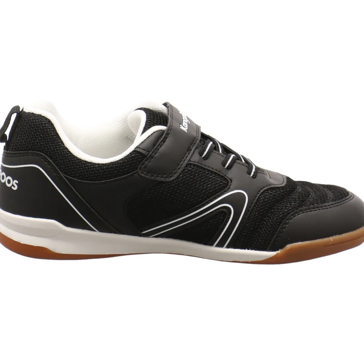 Optisch punktet der Schuh durch das Markenlogo auf dem Klettverschluss und an der Ferse, sowie dem Kanguru an der Seite, in Weiß.