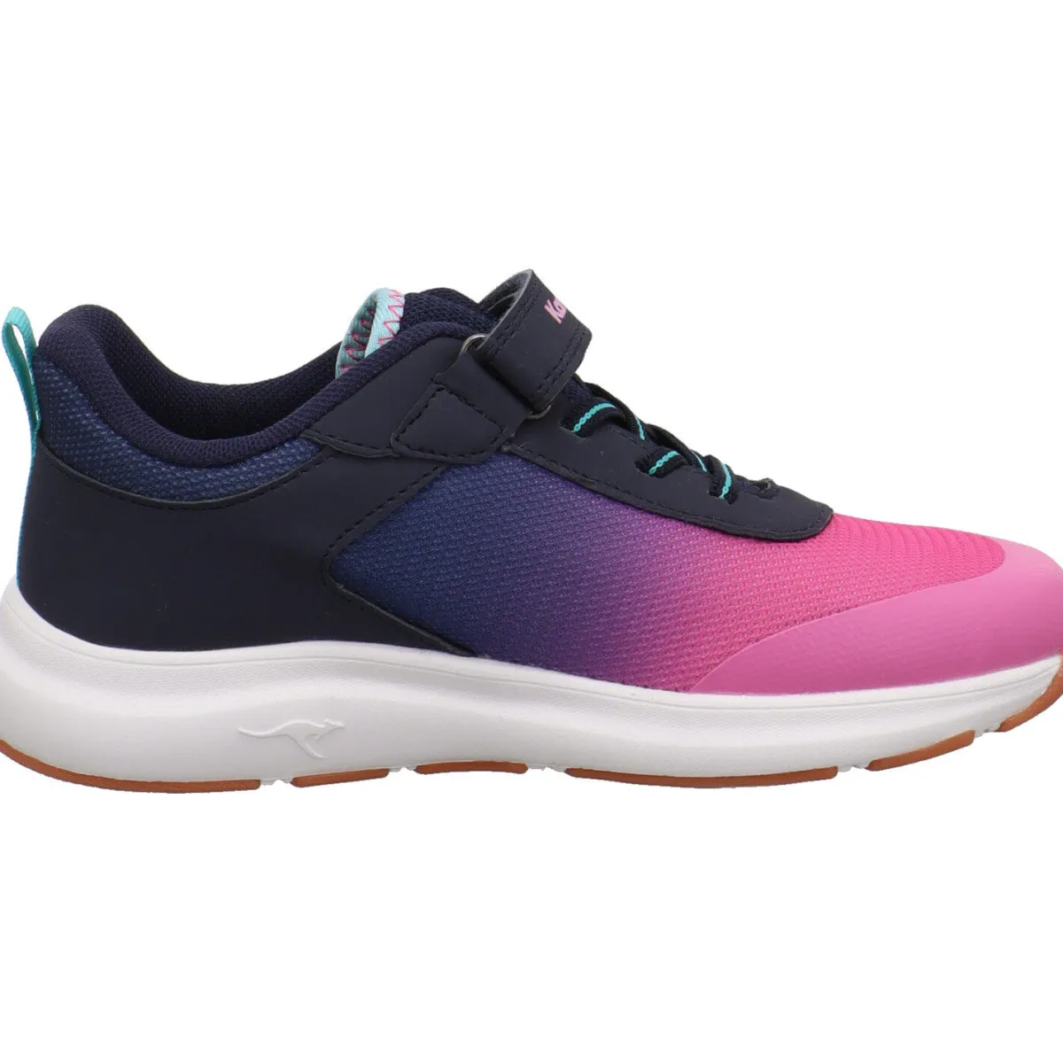 Er wurde aus flexiblen Textil in Blau mit Pink gefertigt und ist an der Schuhspitze und Ferse mit Einsätzen aus Synthetik versehen, diese machen ihn robust.