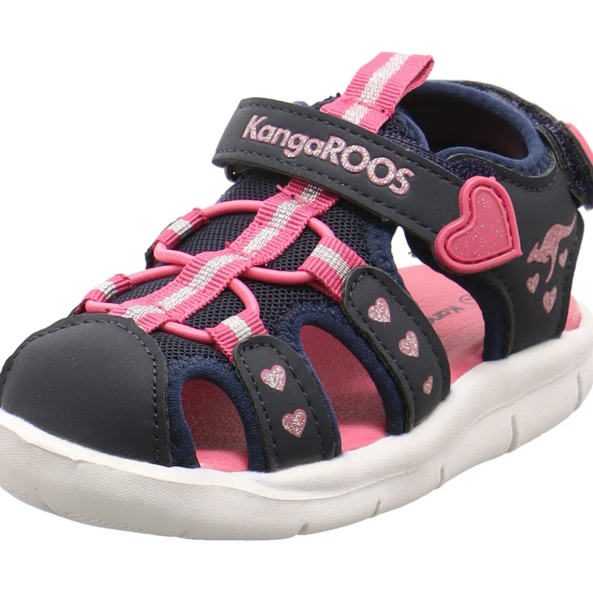 Das offen gestaltete Obermaterial aus Kunstleder und mit atmungsaktiven Mesh Einsätzen in Blau macht diesen Schuh besonders leicht und flexibel. Farbakzente in Pink und die Laufsohle in Weiß geben dem Modell den letzten Schliff. Weitere Hingucker sind die Herzen auf dem Klettverschluss und die Glitzer Einsätze. Das lässt jedes kleine Mädchen Herz höher schlagen.