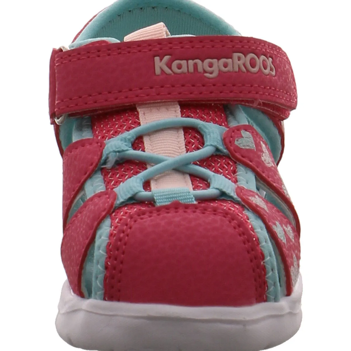 Die verstärkte Schuhspitze schützt die Zehen auch auf unwegsamem Gelände und durch den Klettverschluss und die Gummischnürung lässt sich die Sandale perfekt den Kinderfüßen anpassen.