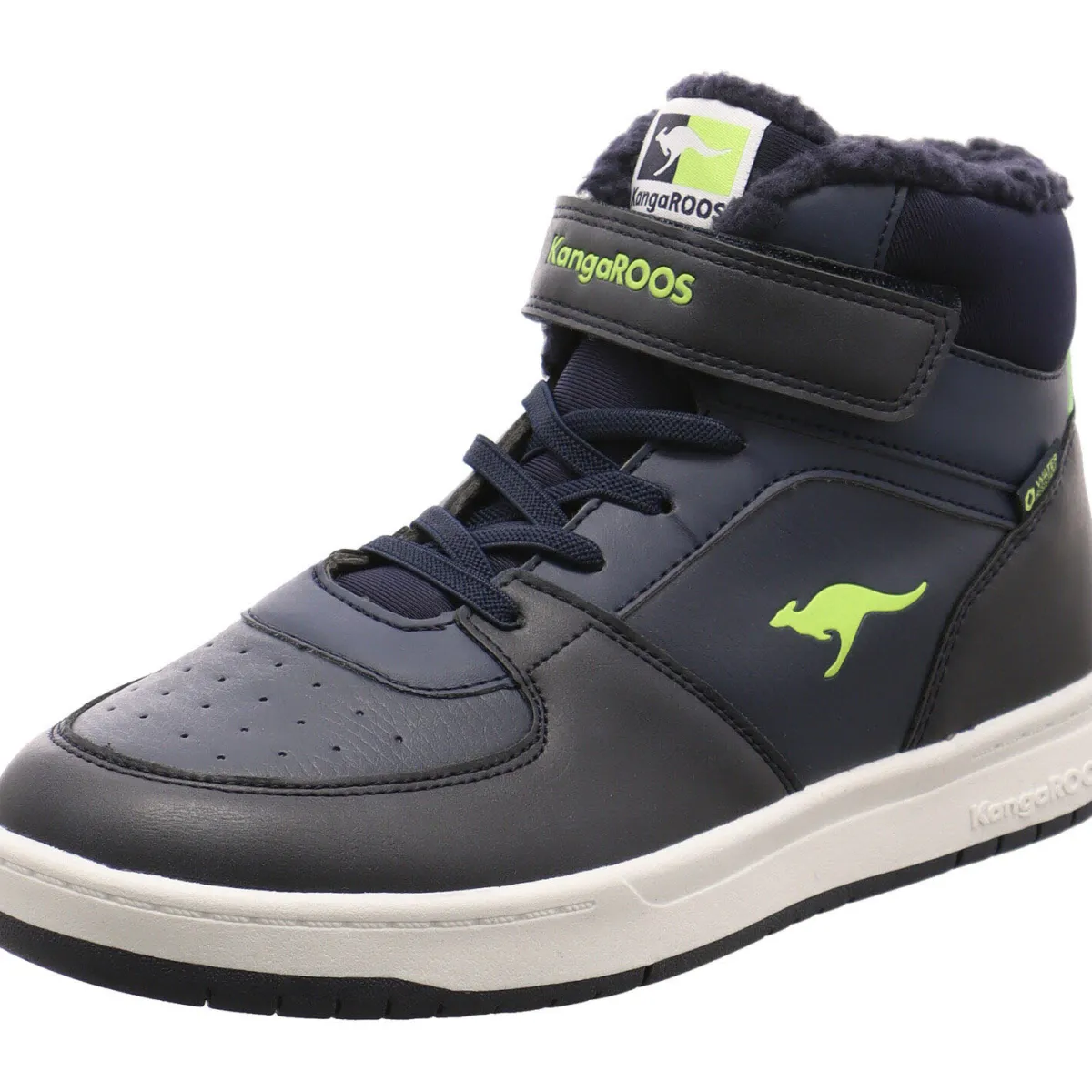 Das Obermaterial aus Kunstleder und Textil ist robust und langlebig und wird durch die Ton in Ton Ziernähte perfekt in Szene gesetzt. Highlight ist das Kanguru Logo in Grün an der Seite.
