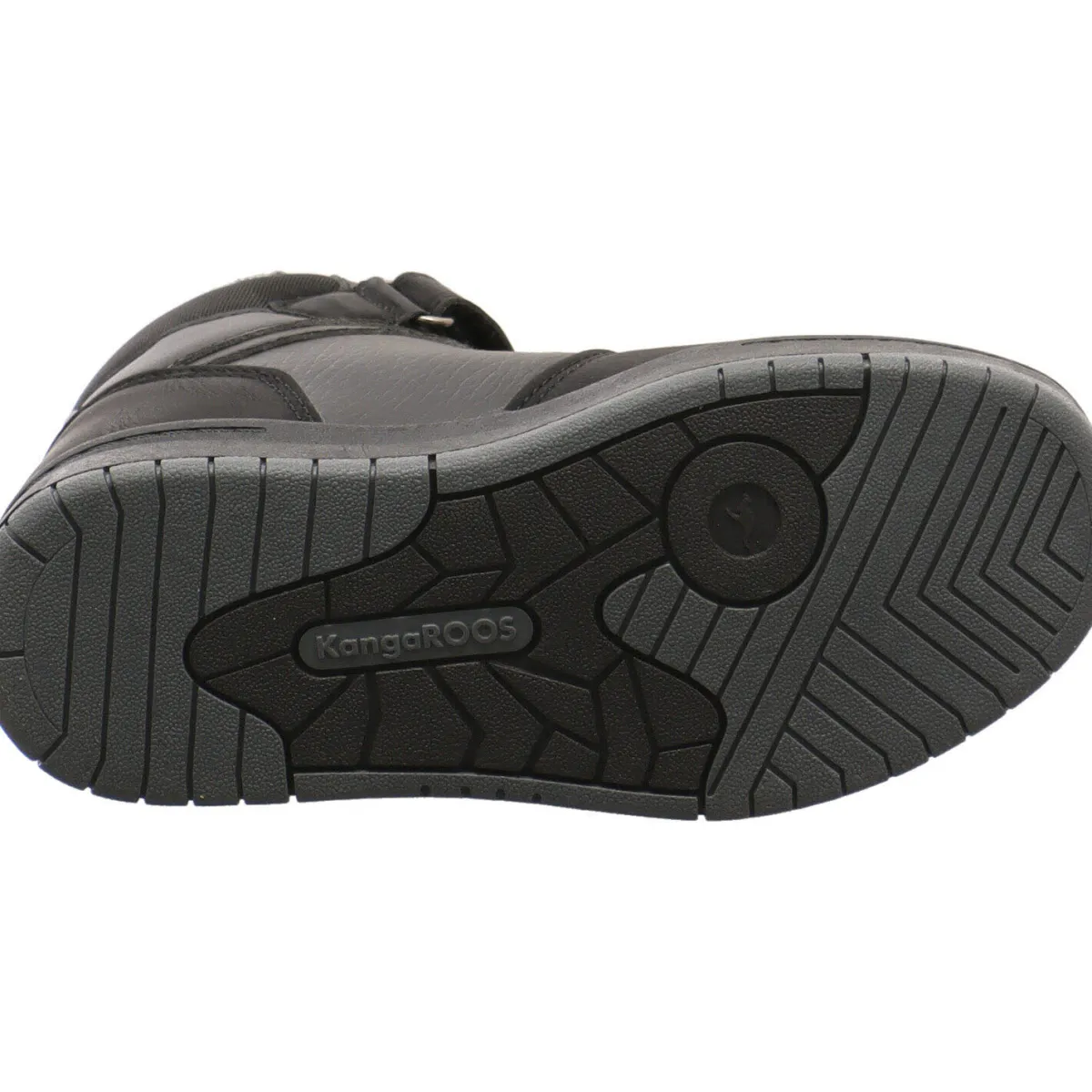 Das Obermaterial wurde aus einem Mix aus Kunstleder und Textil in Schwarz gefertigt. Die Overlay Optik und kleine Lasercuts auf dem Blatt, zusqammen mit dem Kanguru an der Seite und dem Markenlogo, geben dem Schuh sein modisches Aussehen.