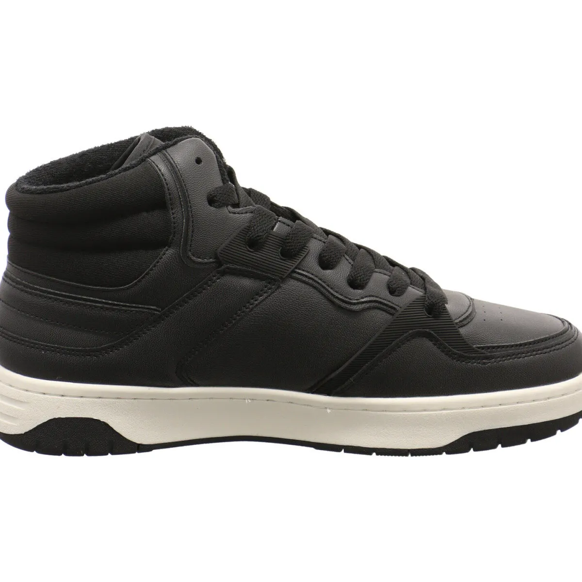 Er wurde aus einem Mix aus Kunstleder und Textil in Schwarz gefertigt. Kleine Lasercuts, das Markenlogo an der Seite und auf der Zunge und die sportliche Schnürung, geben ihm seinen modernen Look.