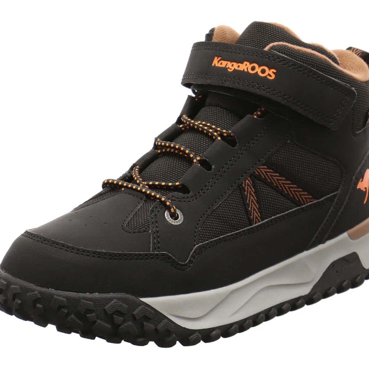Das Obermaterial des Sneaker besteht aus einem pflegeleichten Synthetikmaterial mit Textil Parts und ist dank einer speziellen Beschichtung wasserabweisend. Für ein schnelles und bequemes An- und Ausziehen sorgt der Klettverschluss, sowie die praktische Gummischnürung. Auch hier ist die versteckte, kleine Tasche unter der Zunge zu finden. Die Kanga Grip Laufsohle bietet optimalen Halt auf jedem Untergrund.
