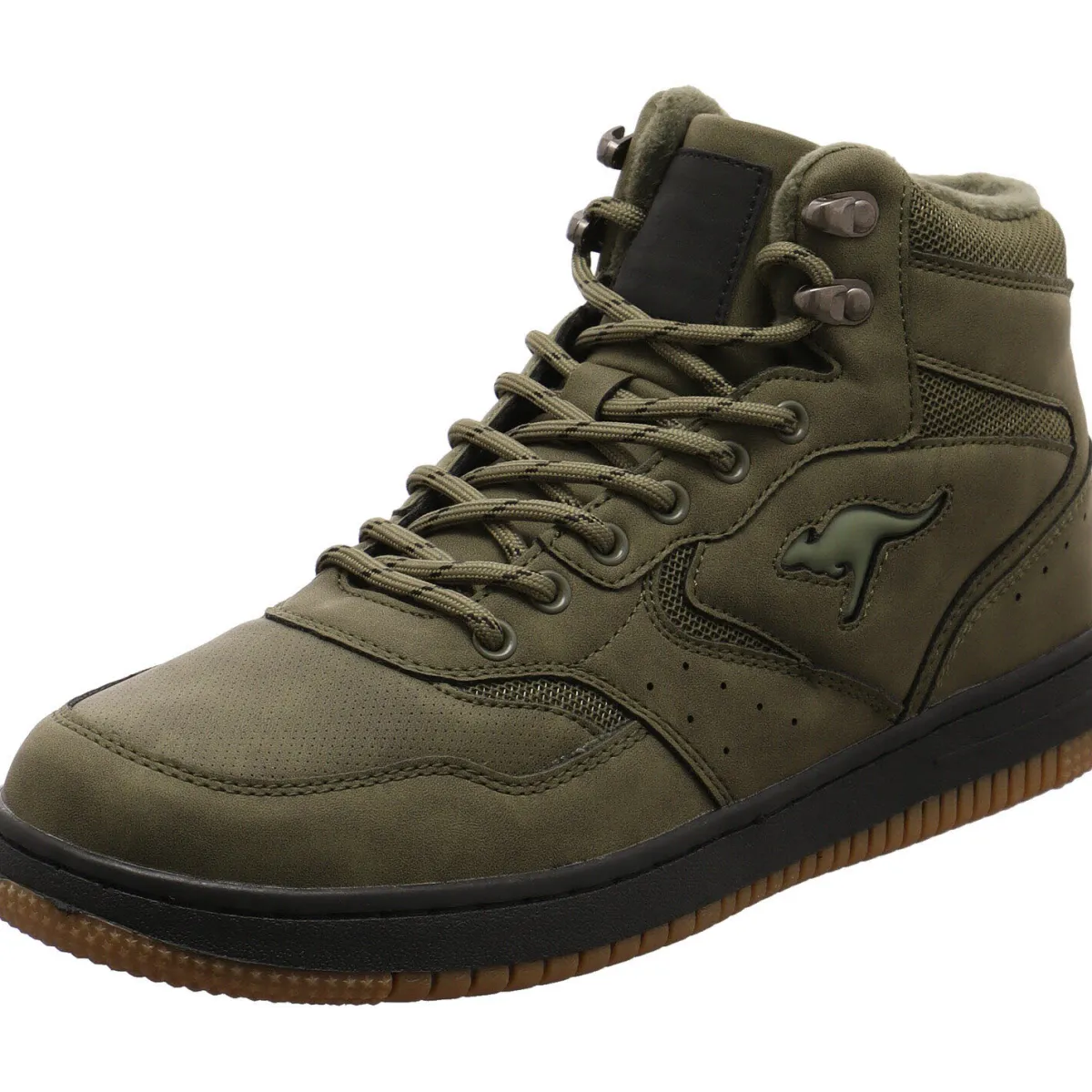 Das Obermaterial wurde in einem Mix aus Kunstleder und Textil Mesh in Olive Grün gefertigt.