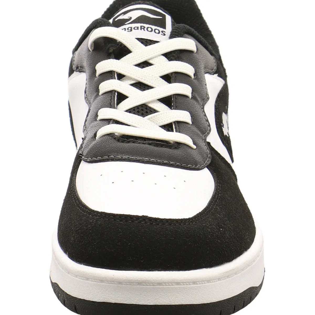 Das Obermaterial aus einem tollen Mix aus Textil und Kunstleder, erscheint im Retro Look mit einer tollen Farbkombination aus Schwarz und Weiß. Die Zunge und der Schaft sind super weich gepolstert und mit der Schnürung kann er optimal an den Fuß angepasst werden. Die Innensohle ist als Wechselfußbett gearbeitet und dank der Roos Fit Größenkennzeichnung, kannst du die optimale Größe herausfinden.