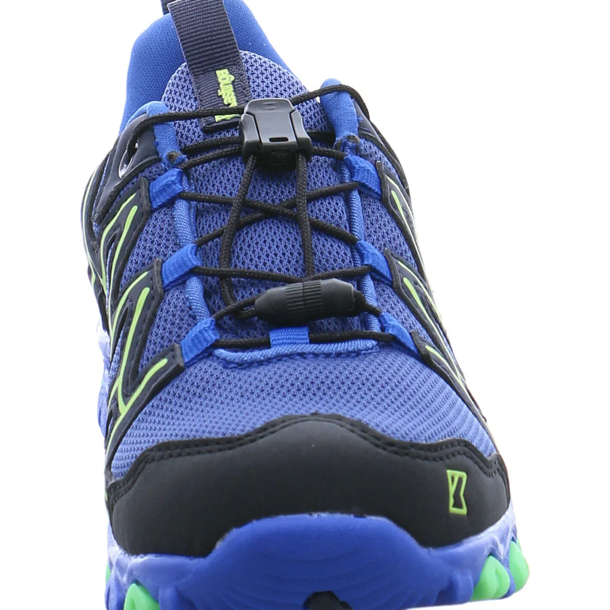 Gefertigt aus einem Mix aus Kunstleder und Textil Mesh in Blau, Schwarz und Grün ist die Schuhspitze und Ferse verstärkt, wodurch der Schuh besonders robust ist.