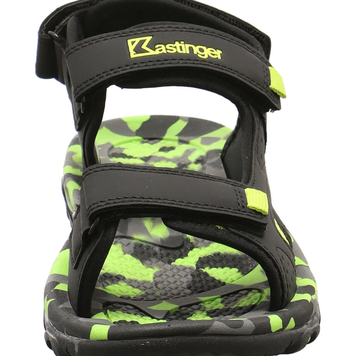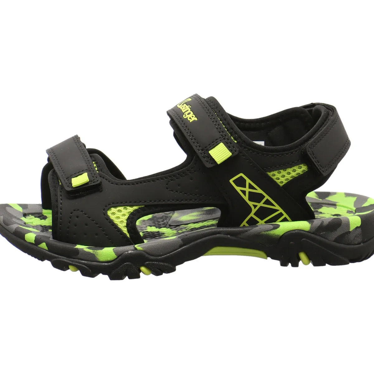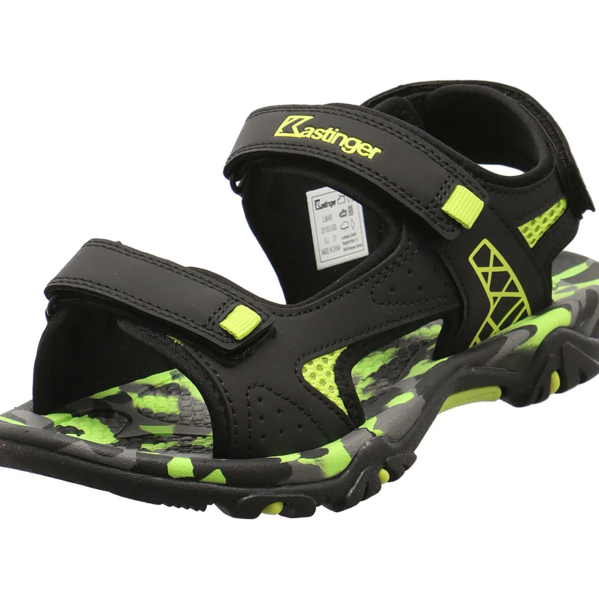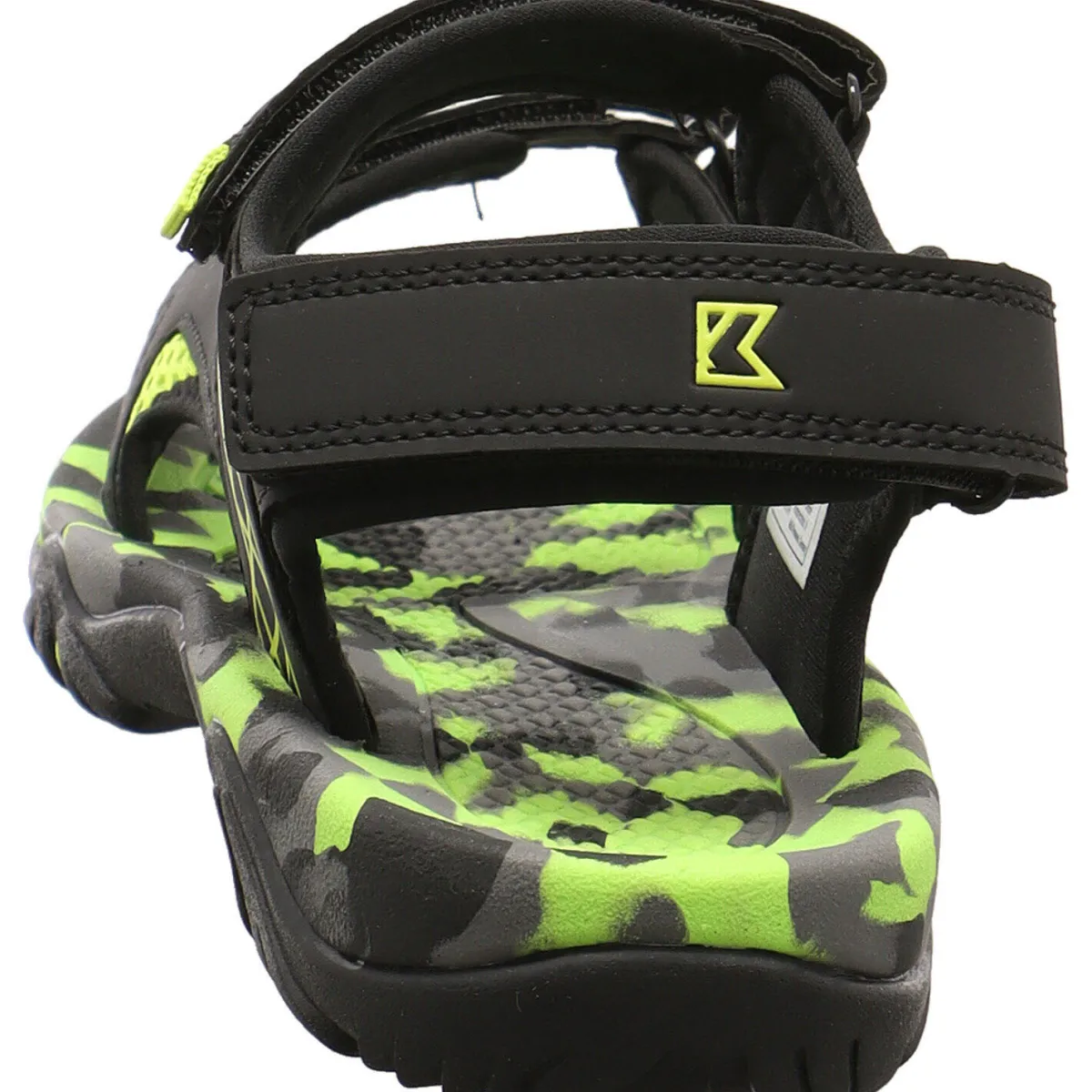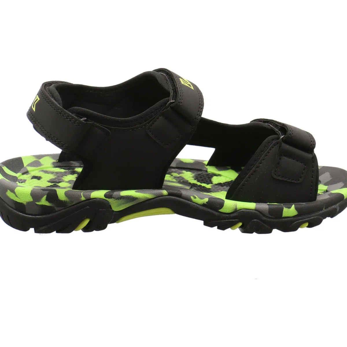 Gefertigt aus einem Mix aus Kunstleder in Schwarz und Textil Mesh in Grün bietet er ein angenehmes Tragegefühl. Aufgelockert wird das Design durch Ziernähte und Farbakzente in Neon Grün. Durch den dreifachen Klettverschluss lässt der Schuh im Trekking Look sich optimal dem Fuß anpassen. Die Innensohle ist angenehm perforiert und im Camouflage Look gestaltet.