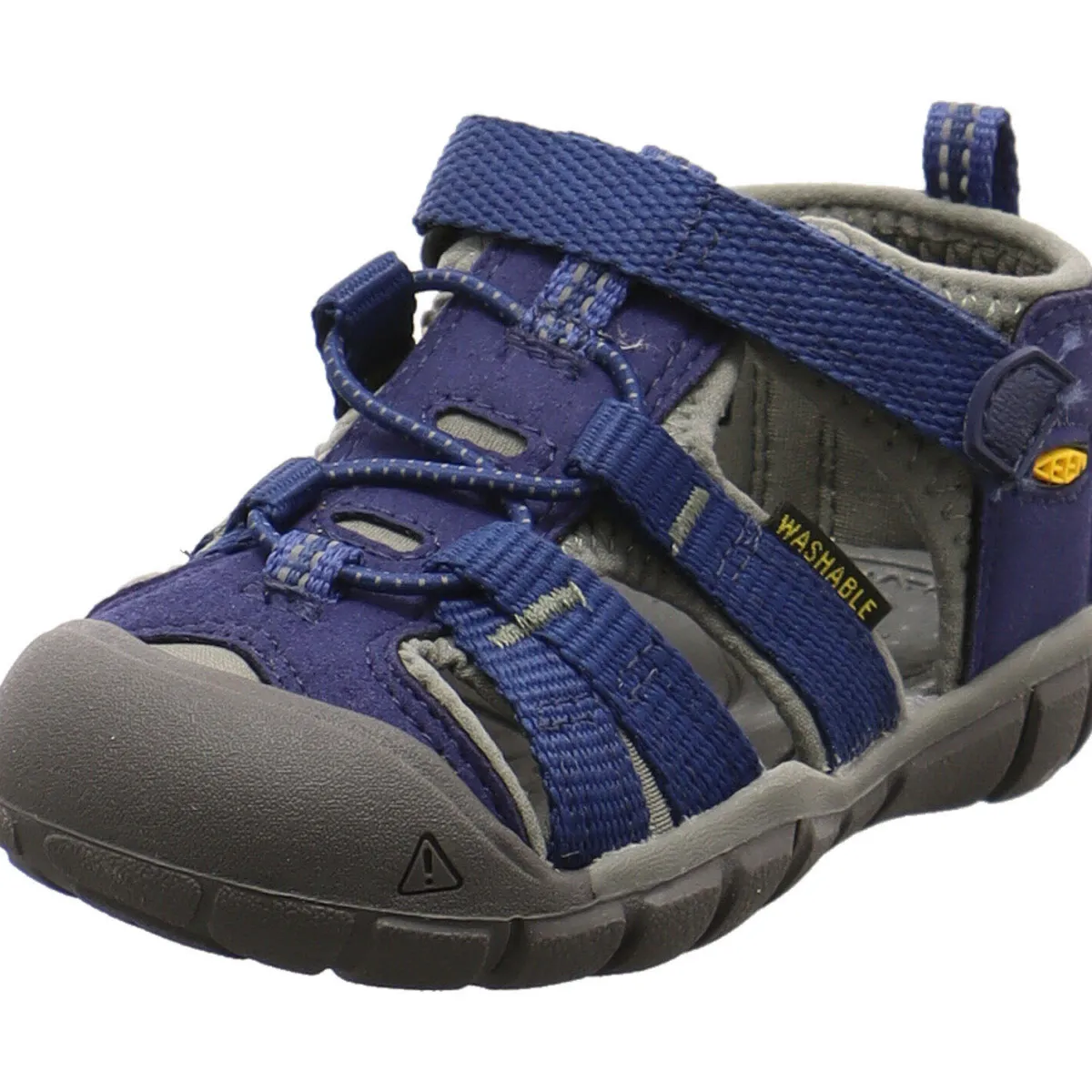 Durch die regulierbare Gummischnürung und den Klettverschluss lässt sich die Sandale optimal an den Fuß anpassen, während die verstärkte Schuhspitze die Zehen hervorragend schützt.