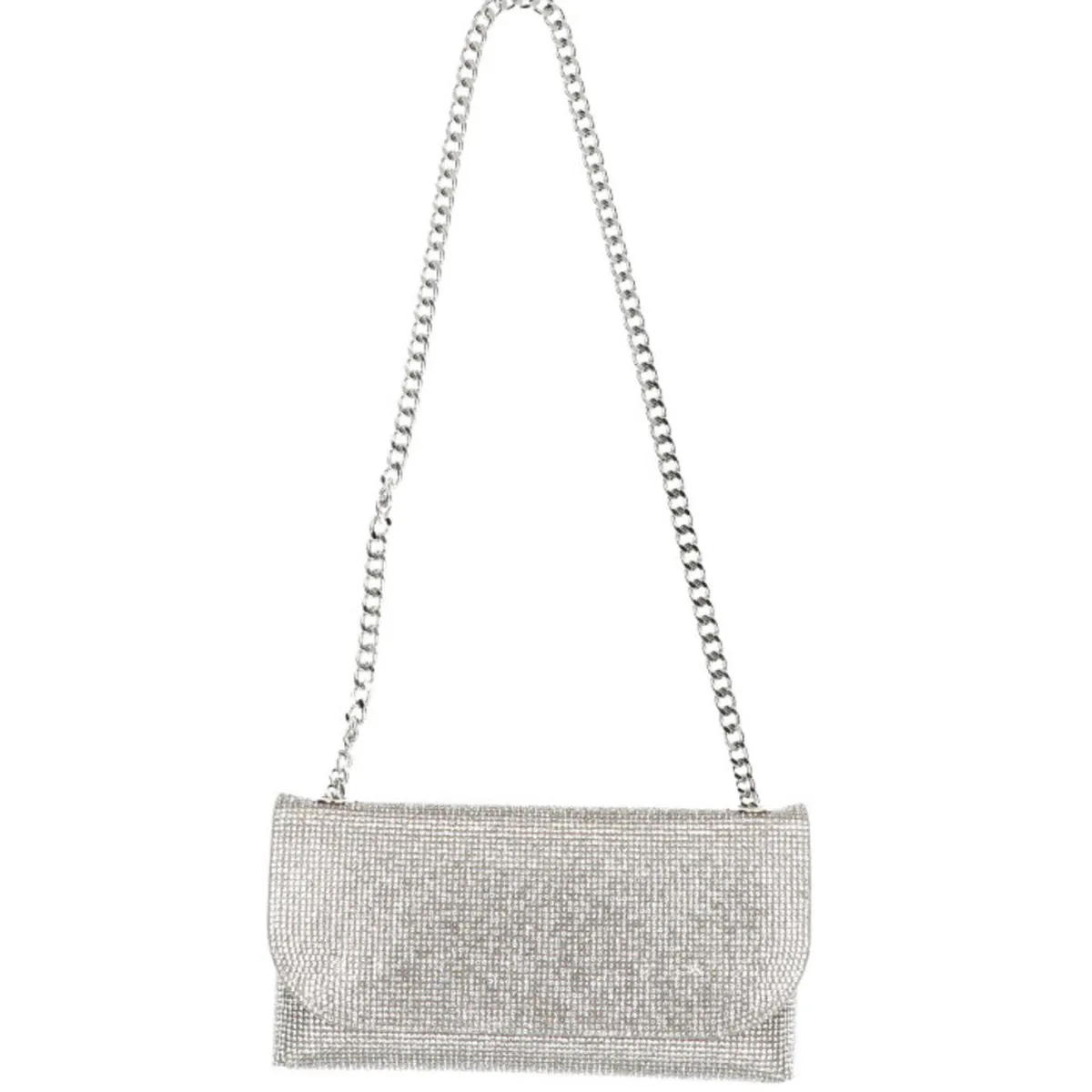 Das hochwertige und anschmiegsame Obermaterial aus Kunstleder ist mit unzähligen Stasssteinchen besetzt, die dezent schimmern. Durch die stilvolle Kette kann die Damen Handtasche super über der Schulter getragen werden.