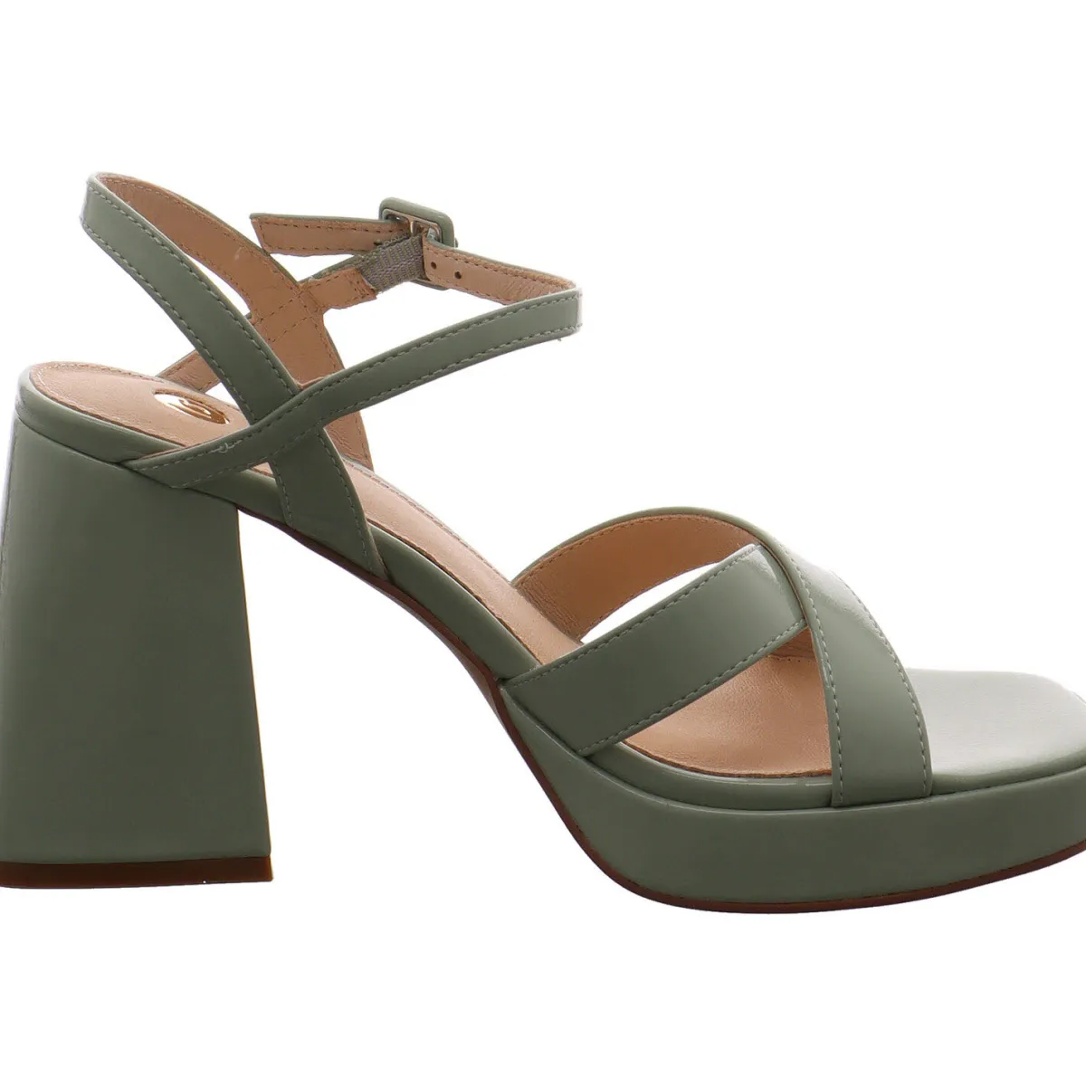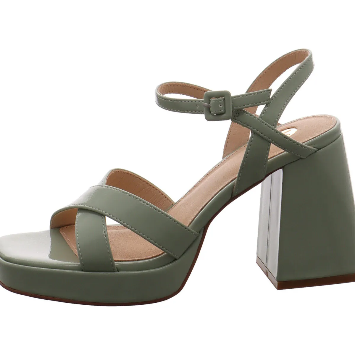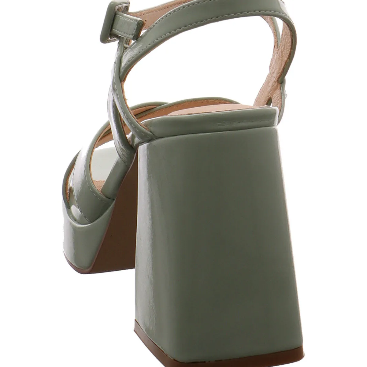 Gefertigt aus Kunstleder in Lack Optik Mint Grün, sind die Riemen stilvoll gesetzt. Der Riemen am Knöchel ist mit einer Schnalle versehen und hilft den Schuh perfekt anzupassen. Die offene Schuhspitze in Karree Form ist absolut modisch und bietet dem Fuß etwas mehr Platz und Komfort. Der sehr markante kräfte Blockabsatz rundet das sehr modische Design perfekt ab und gibt einen super Halt. Die Höhe des Absatz, zaubert lange Beine und die Echtleder Innensohle sorgt für den nötigen Tragekomfort.