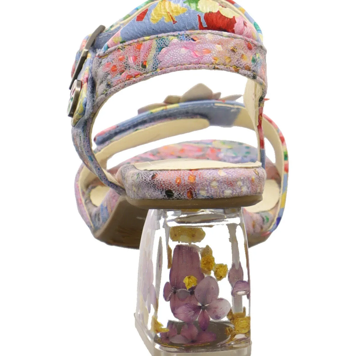 Die Zierschnalle in Gold am Fersenriemen rundet das Design gekonnt ab. Der doppelte Klettverschluss sorgt für einen komfortablen Einstieg und optimale Anpassung an den Fuß. Zudem ist die Sandalette durch die Echtleder Innenausstattung angenehm zu tragen. Das absolute Highlight ist der gegossene, durchsichtige Blockabsatz, in dem sich Blumen befinden. Der Absatz zaubert außerdem tolle Beine. Ein verlässlicher Begleiter im Alltag und in der Freizeit, der sich vielfältig kombinieren lässt.