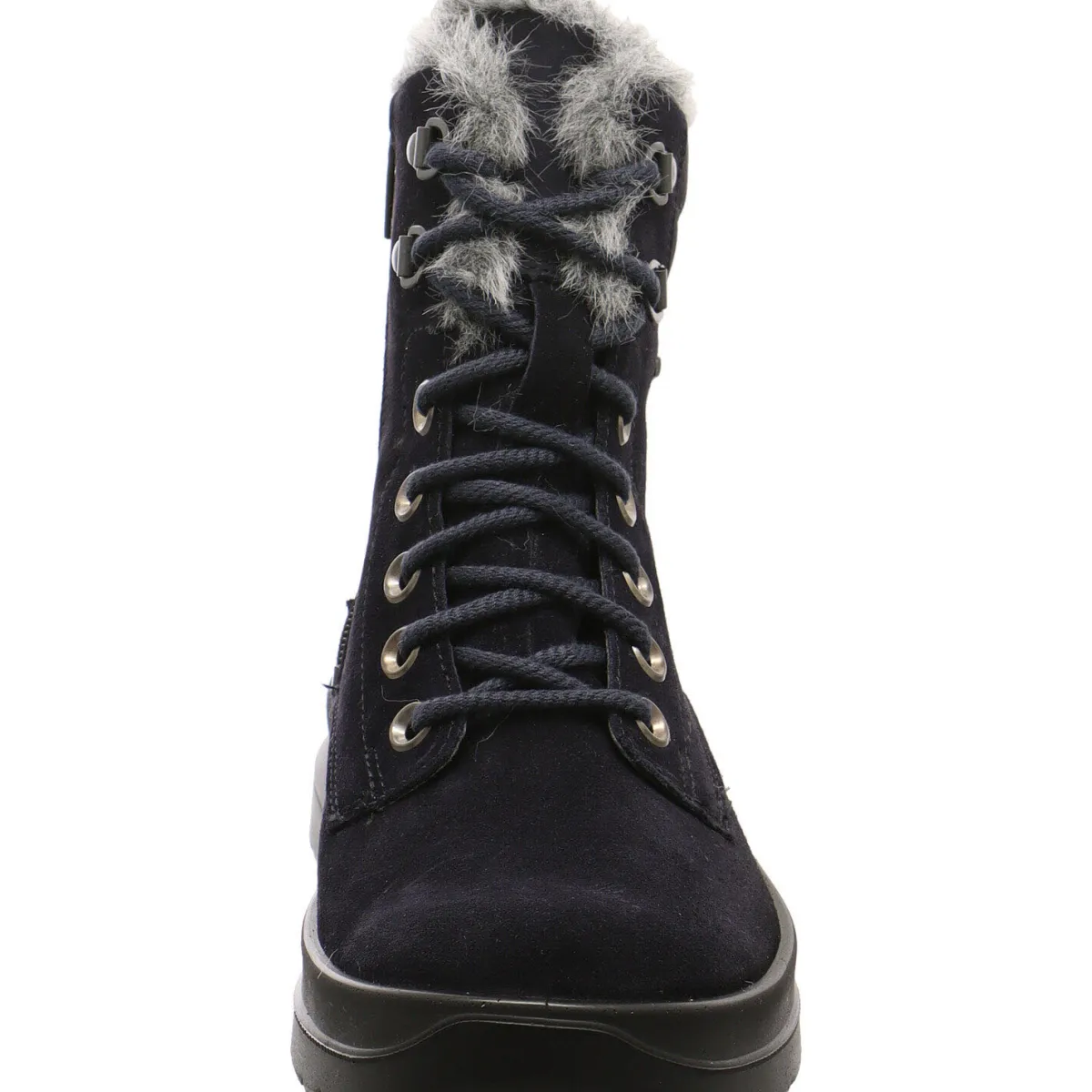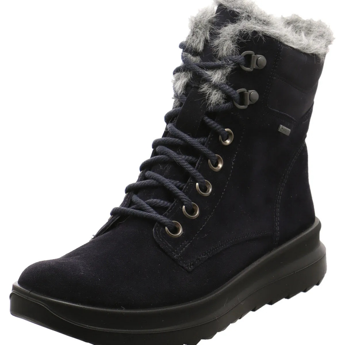 Das Obermaterial wurde in einem Mix aus Echtleder und Textil in Blau gefertigt. Der Schaft ist angenehm weich gepolstert und mit einer schönen Plüsch Kante versehen.