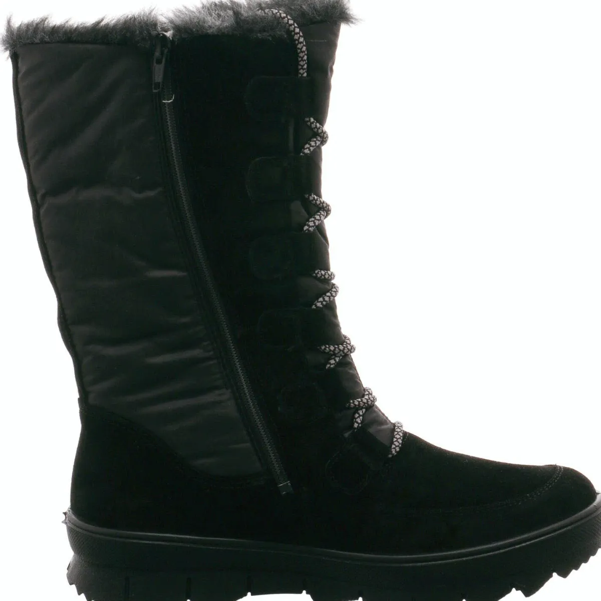Die sportive Laufsohle ist extra leicht und flexibel. Sie sorgt damit für einen hohen Komfort beim Gehen sowie für eine gute Bodenhaftung. Außerdem macht die Gore Tex Membran den Winterstiefel absolut wasserdicht und winddicht bei gleichzeitiger Atmungsaktivität. Damit die Membran auch wirklich für trockene Füße sorgt, achte bitte auf die richtige Auswahl der Socken, diese sollten nicht aus reiner Baumwolle bestehen. Beim Tragen reiner Baumwollsocken kannst du nämlich trotzdem nasse Füße bekommen, allerdings nicht vom Regen oder Schnee, sondern vom Tropenklima in den Schuhen.