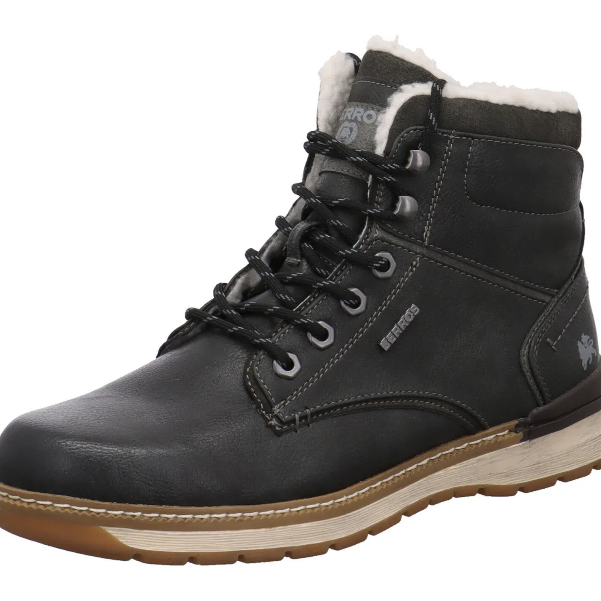 Gefertigt aus Kunstleder in Grau, hat er eine tolle Overlay Optik. Der Schaft aus Textil, ist angenehm weich gepolstert.