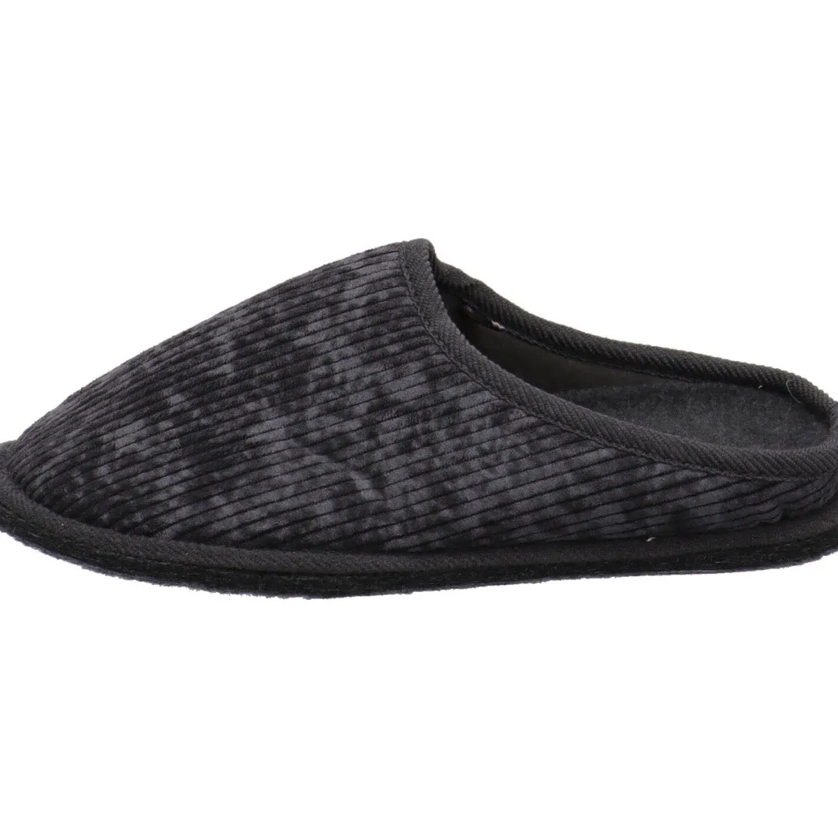 Er wurde aus weichem Textil in Kord Optik in Grau gefertigt. Die Innesohle ist angenehm weich und sorgt für einen weichen Auftritt. Der Pantoffel ist besonders leicht und flexibel gearbeitet und kann auch als Gästehausschuh genutzt werden.