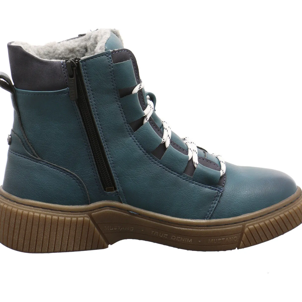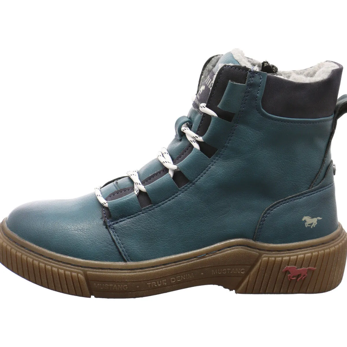 Gefertigt aus hochwertigem Kunstleder in Blau ist er mit farblich abgesetzten Schnürsenkeln versehen und dadurch ein absoluter Hingucker. Ein weiteres tolles Detail ist das Markenlogo auf der Zunge. Auch die Kante vom Schaft ist farblich abgesetzt und außerdem weich gepolstert. Das flauschige, dicke Innenfutter hält deine Füße angenehm warm.