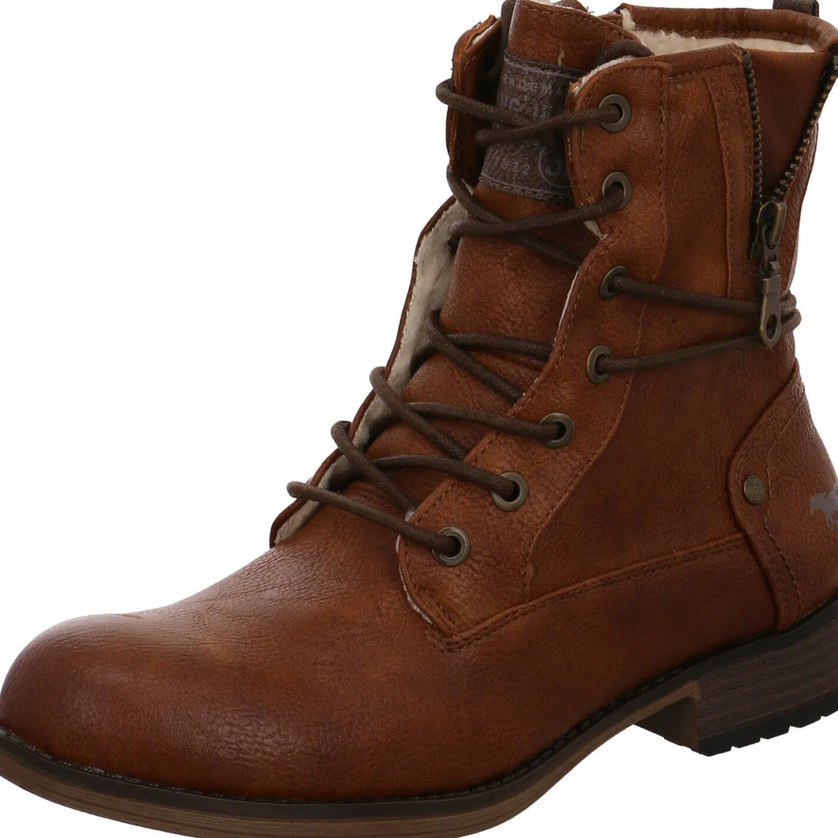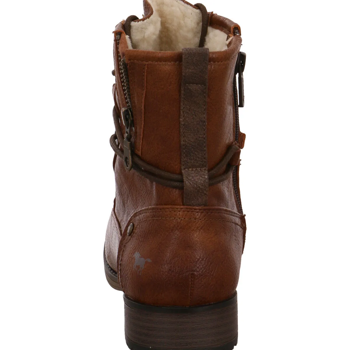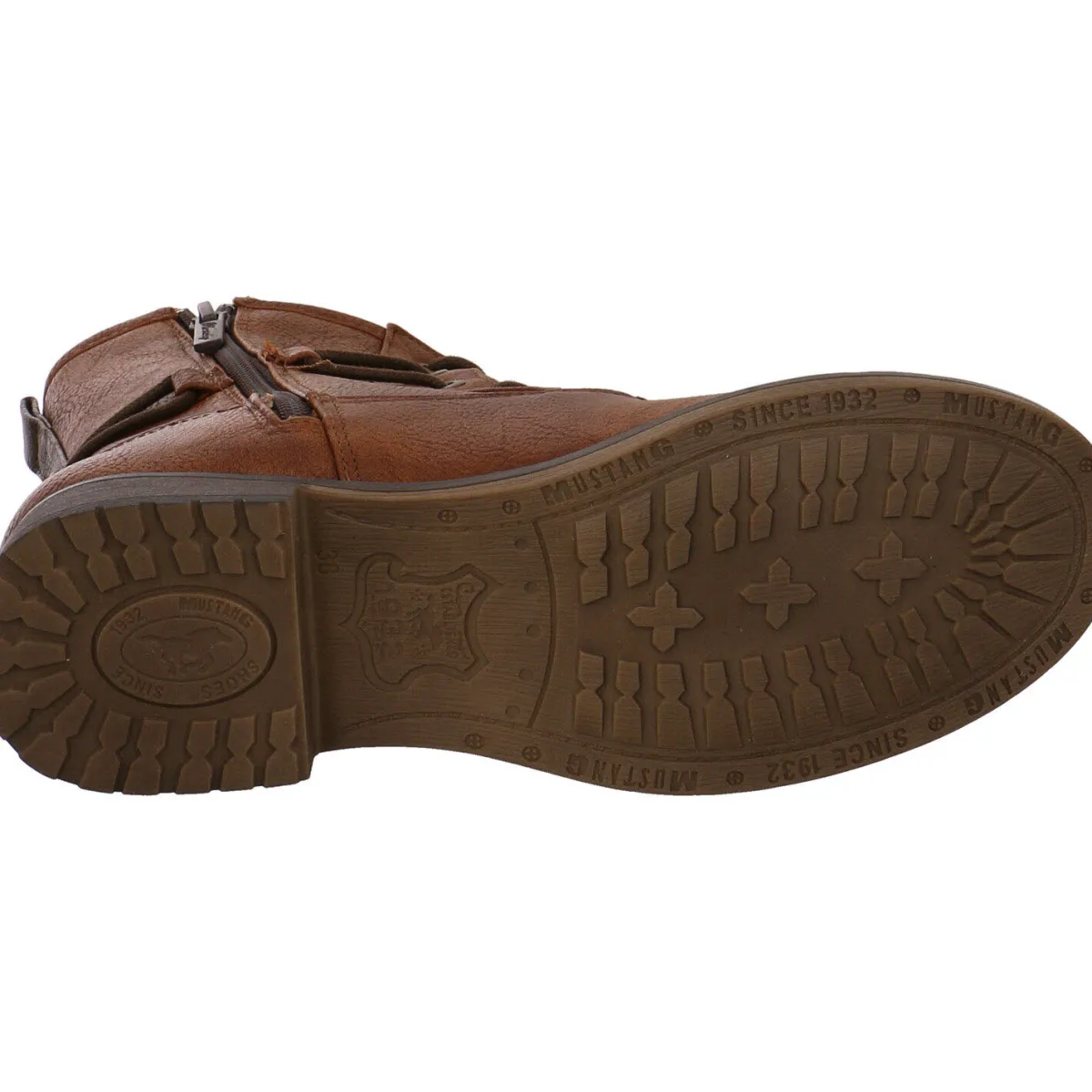 Der Blockabsatz mit einer Höhe von 3cm sowie die leicht profilierte Laufsohle mit integriertem Mustang-Logo runden das Gesamtkonzept ab.