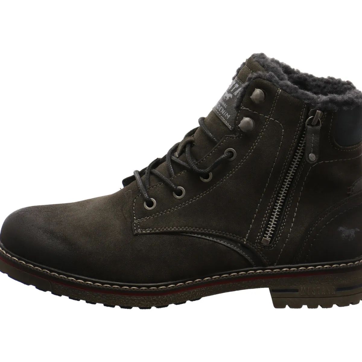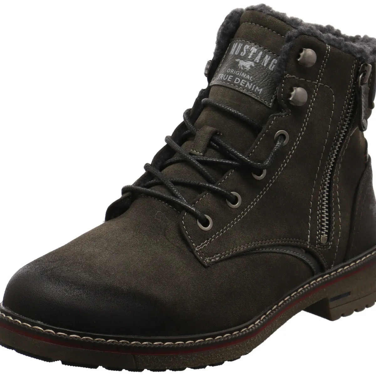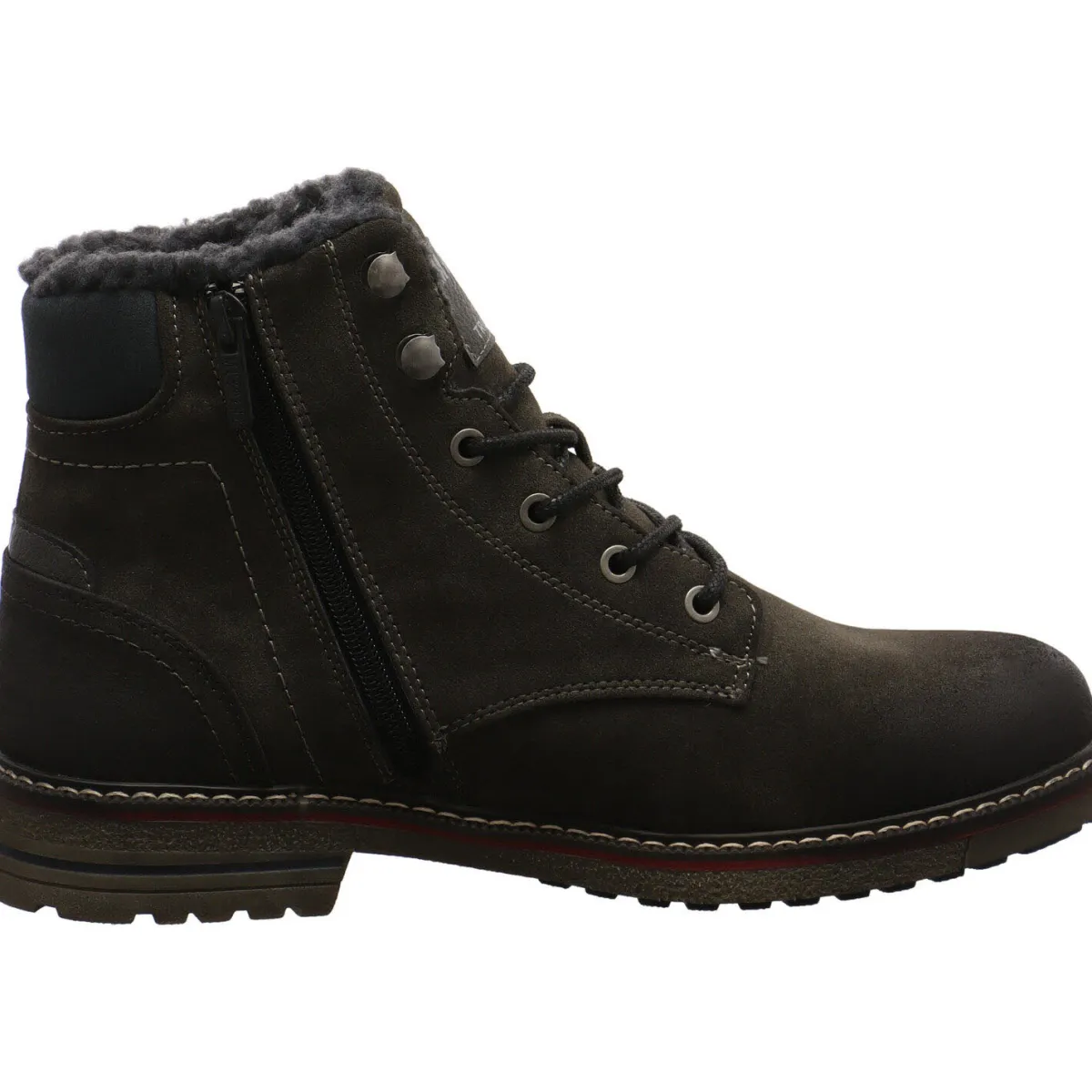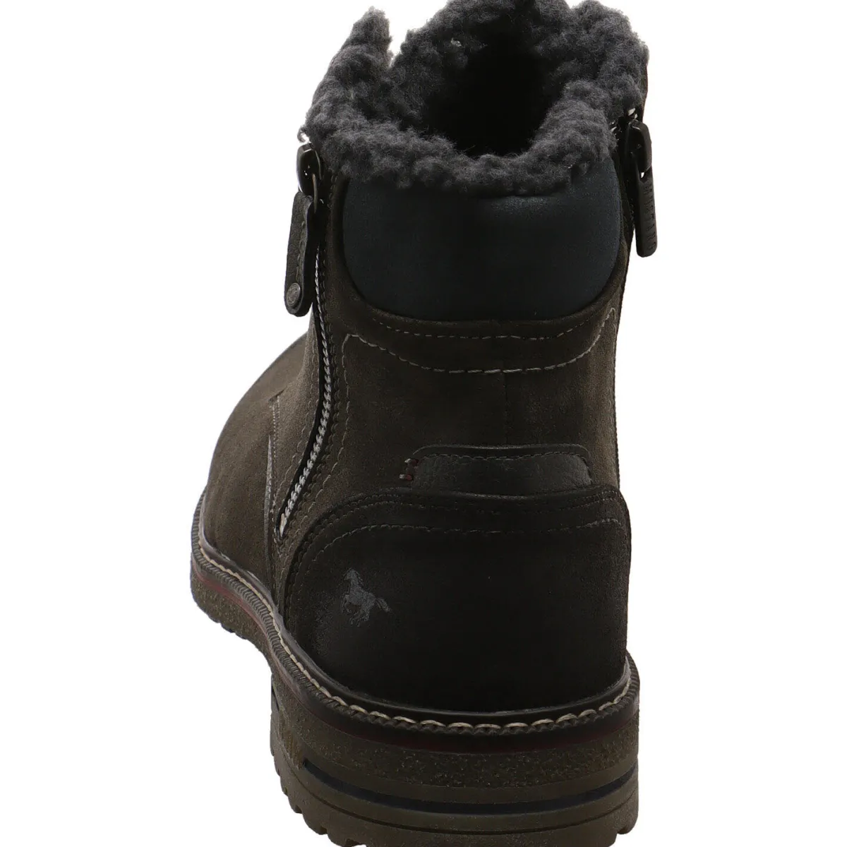 Gefertigt aus gut verarbeitetem Kunstleder in Nubukoptik, sieht der Boots nicht nur schick aus, sondern ist auch robust und langlebig. Der farblich abgesetzte Schaftabschluss in hellem Grau, die Schnürsenkel in Schwarz und der Zirzipper an der Außenseite, geben dem Schuh das gewisse Etwas.