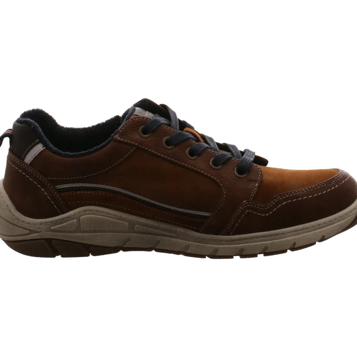 Die unterschiedlichen Braun Farbtöne und die Schnürsenkel in Blau, sorgen für einen tollen Kontrast.