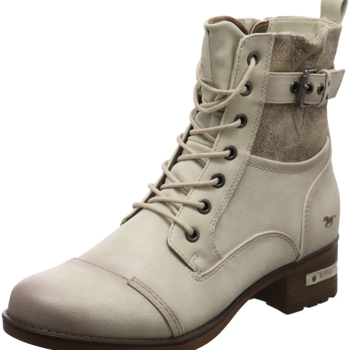 Der Blockabsatz mit einer Höhe von 4 cm sowie die leicht profilierte Laufsohle mit integriertem Mustang-Logo runden das Gesamtkonzept ab.