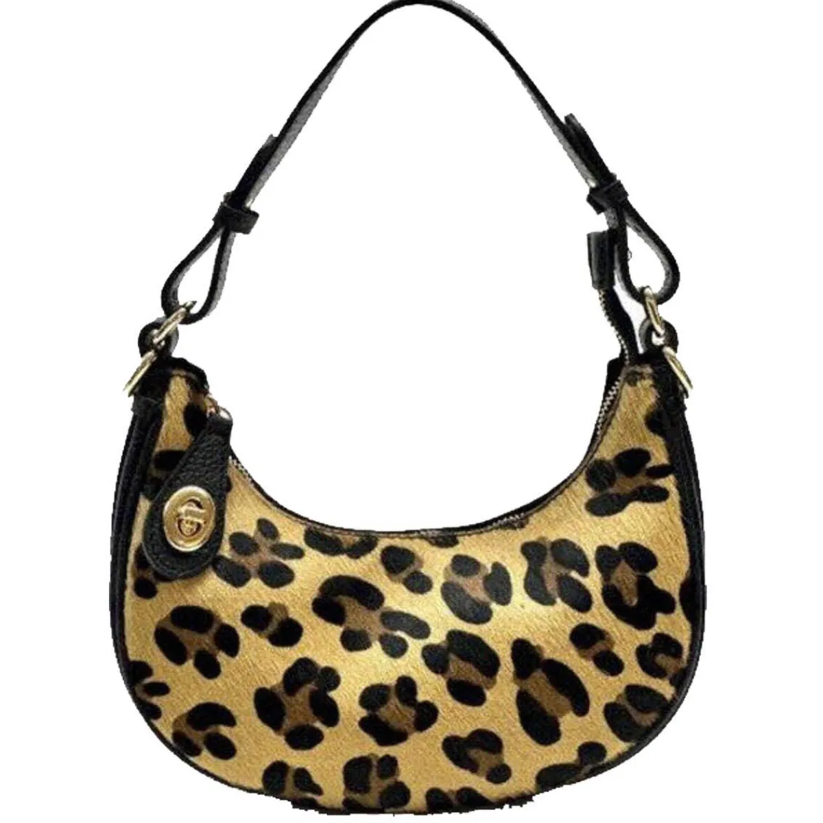 Sofort ins Auge fällt dabei der angesagte Leo Animal Print auf dem Obermaterial aus Rindsleder, in Kombination mit Kuhfell, welches bedruckt worden ist. Das macht diese Tasche zu einem besonderen Highlight.