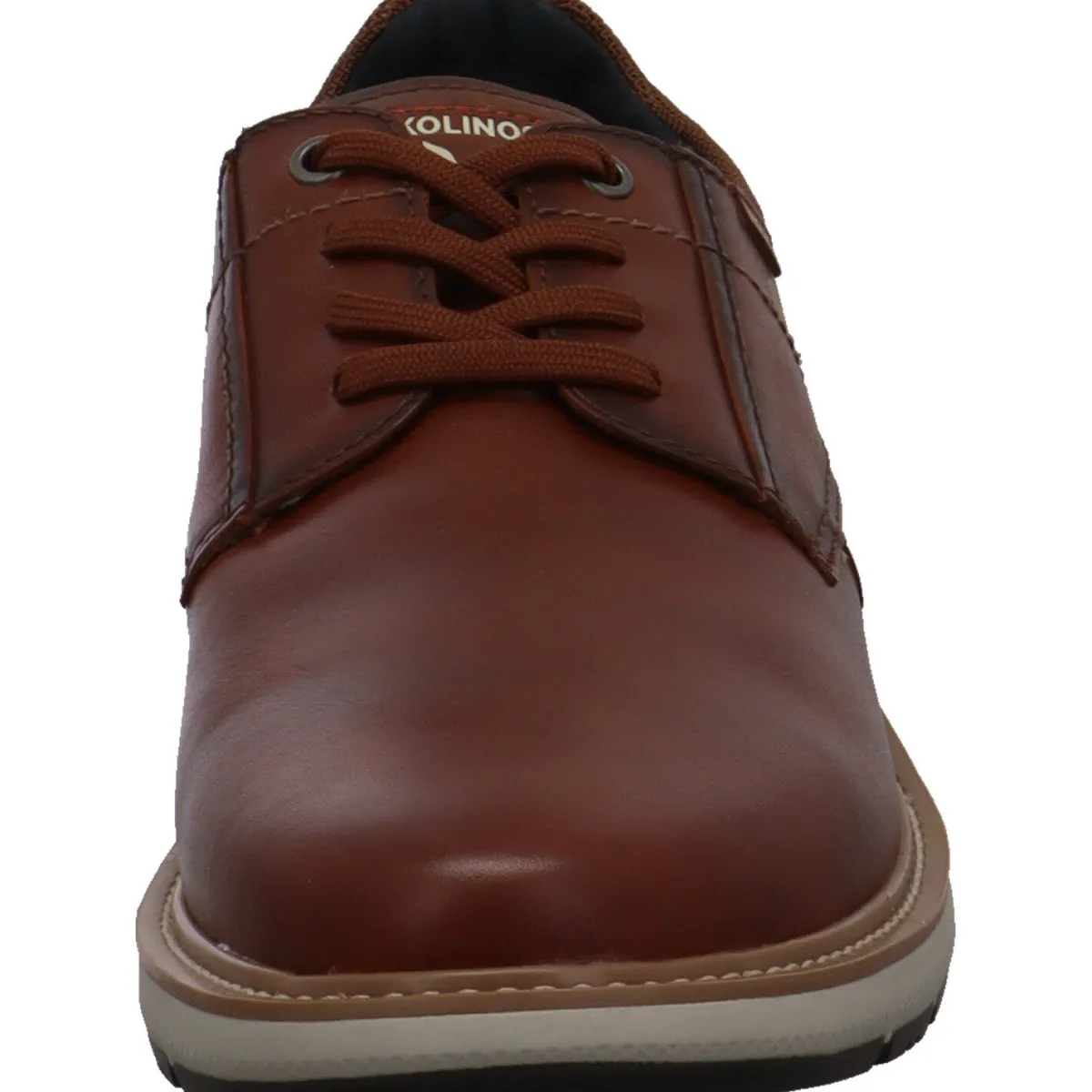 Er wurde aus hochwertigem, weichen Echtleder in Braun gefertigt. Ein Einsatz in Blau an der Ferse passt perfekt zum sportlichen Look.