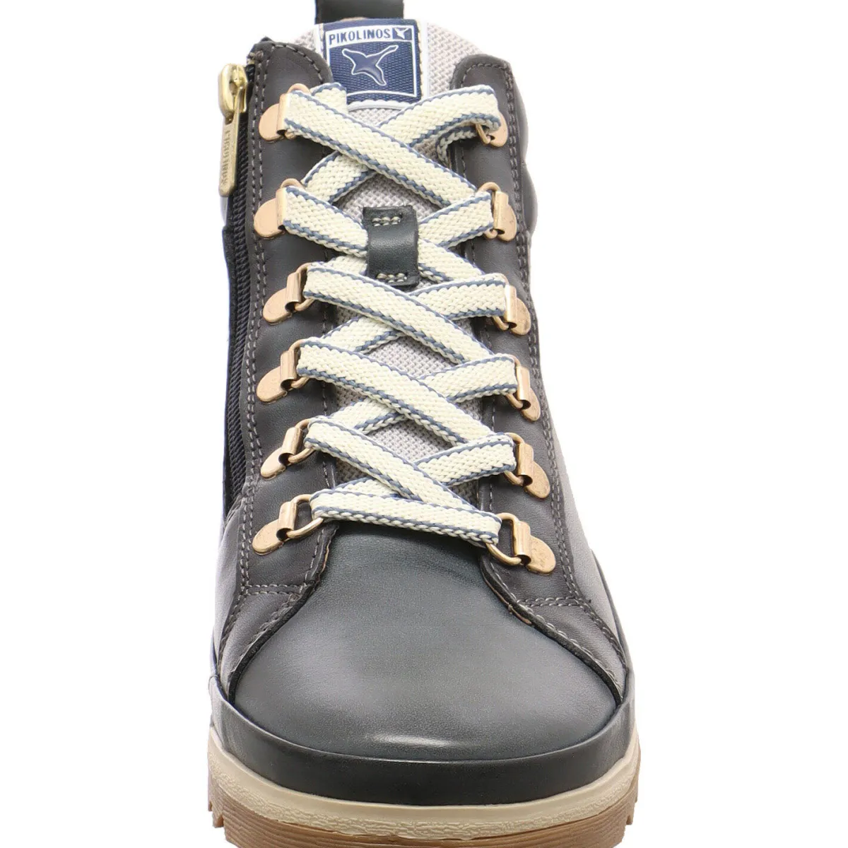 Die groben Schnürsenkel, mit der Bergsteigerschnürung sind hell abgesetzt und verleihen dem Schuh seinen sportlichen Look. Mit diesen kann der Schuh optimal an den Fuß angepasst werden. Mit dem seitlichen Reißverschluss und der Lasche am Schaft, ist der Einstieg besonders komfortabel.