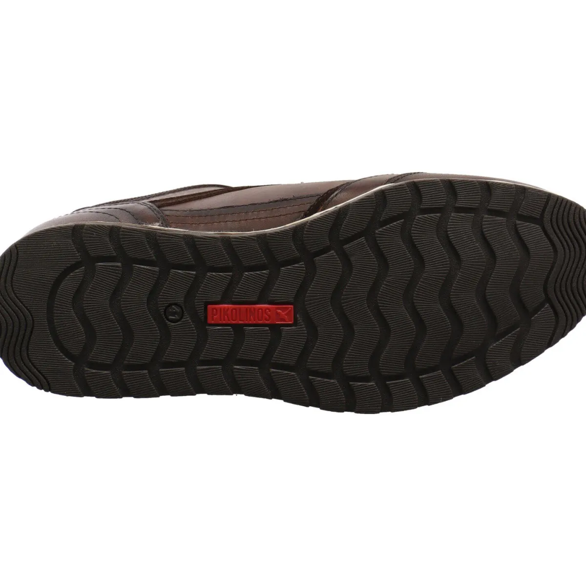 Ausgewähltes Obermaterial aus hochwertigem Echtleder in Braun wurde mit einem Einsatz aus Textil am Schaft und Ziernähten versehen, die dem Schuh seinen besonderen Look verleihen.