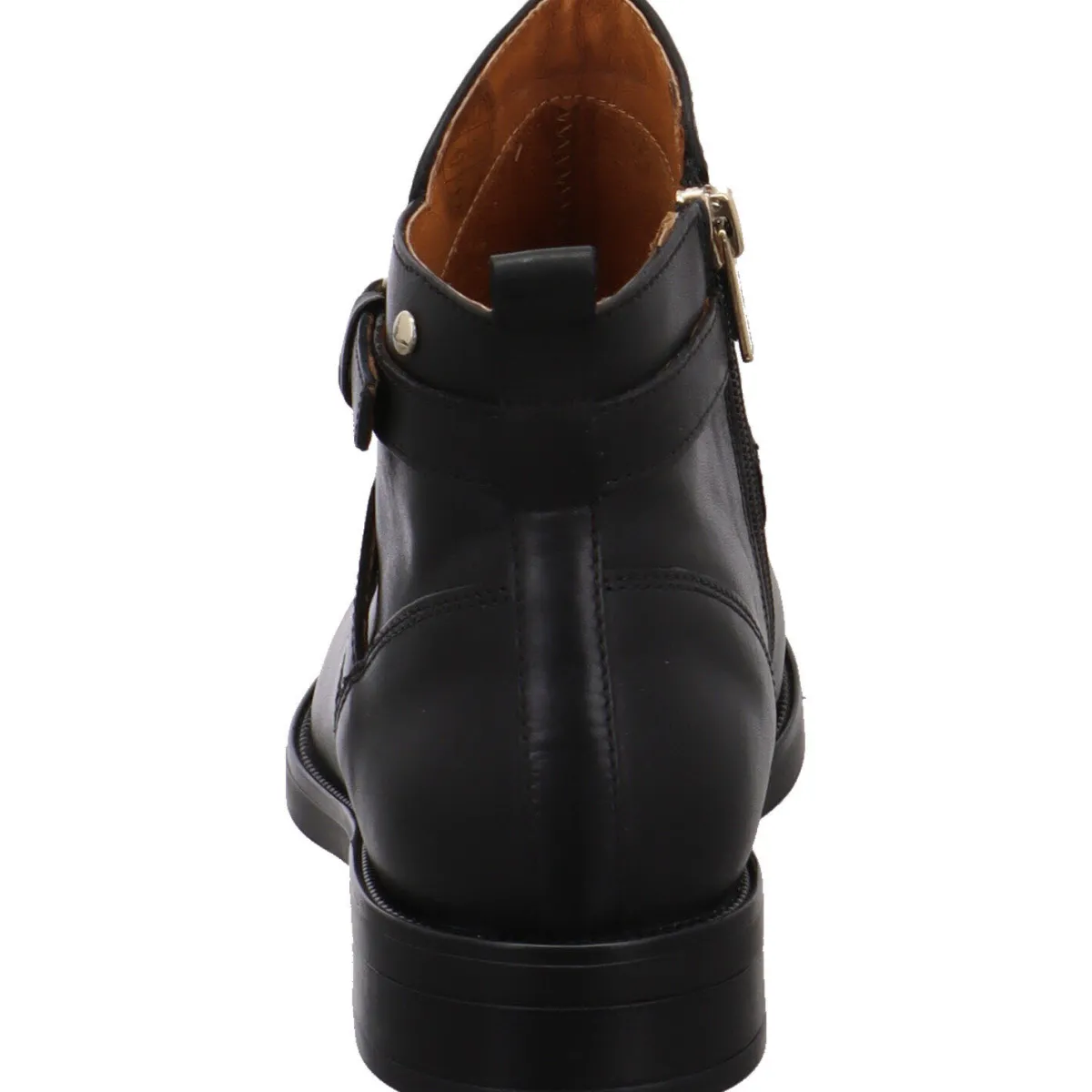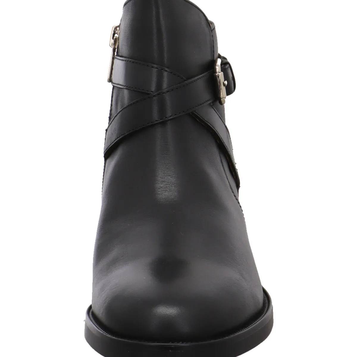 Sie wurde aus hochwertigem, weichen Echtleder in Schwarz gearbeitet. Der stilvoll gesetzte Riemen am Knöchel, mit einer verstellbaren Dornschnalle, verleiht ihr das gewisse Etwas. Durch den seitlichen Reißverschluss und der Lasche am Schaft ist der Einstieg ganz einfach. Das Innenfutter ist leicht angeraut und die Echtleder Innensohle besonders weich und komfortabel.
