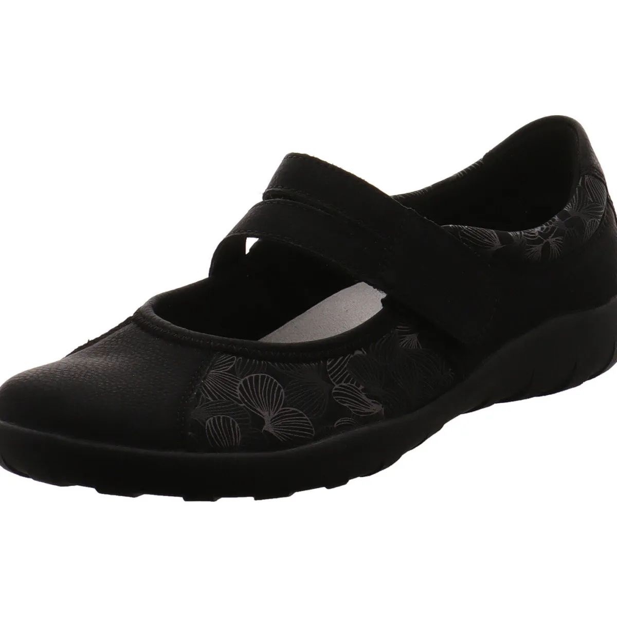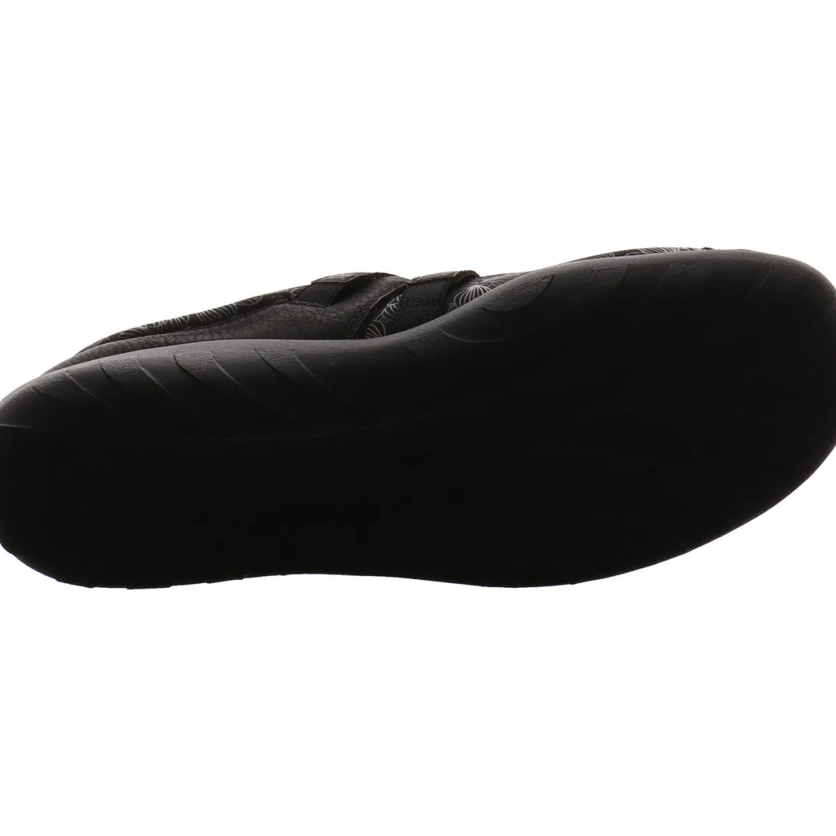 Gerftigt aus einem gekonnten Mix aus Kunstleder und Textil in Schwarz, sind die Textil Einsätze sehr elastisch und mit einem dekorativen Blumen Print versehen.