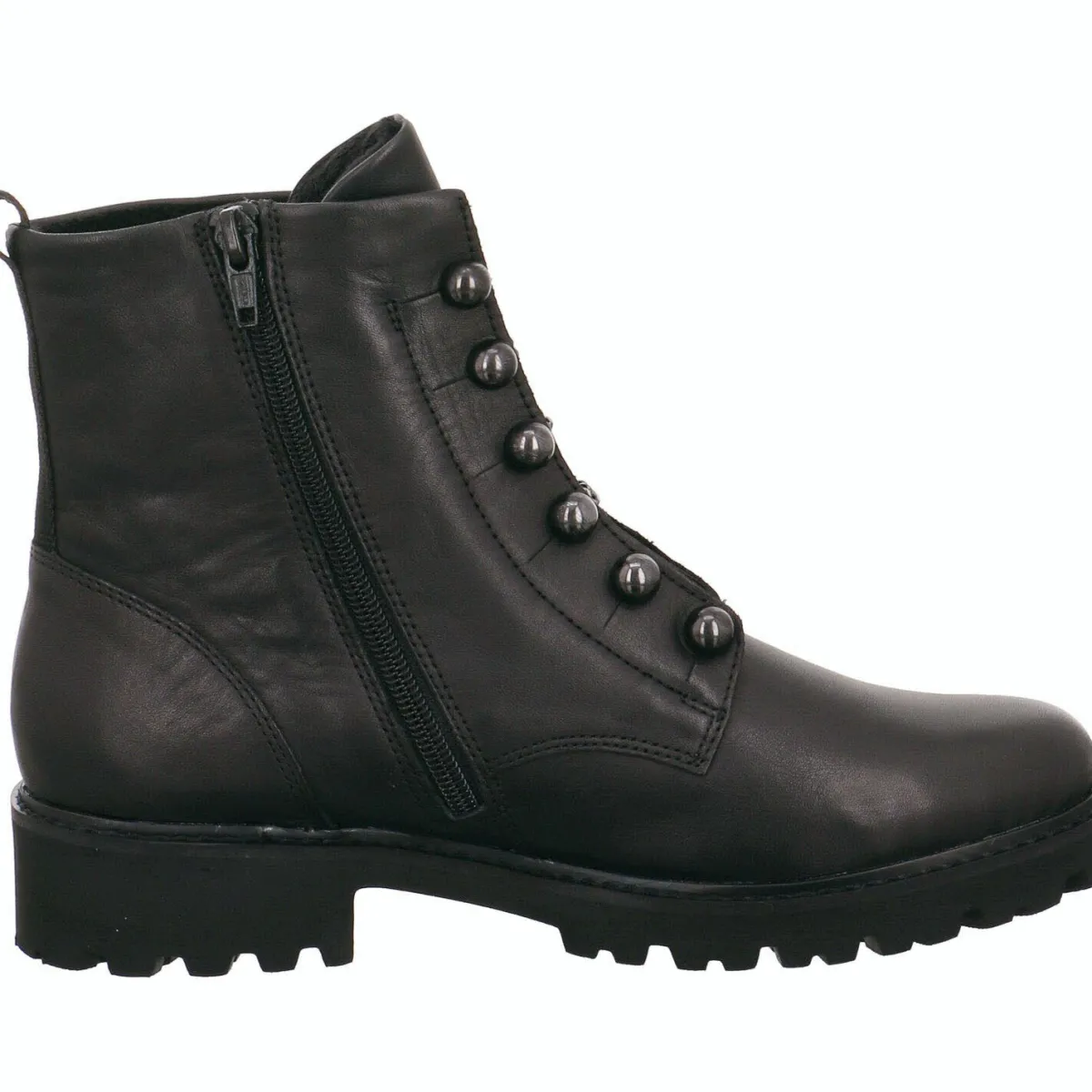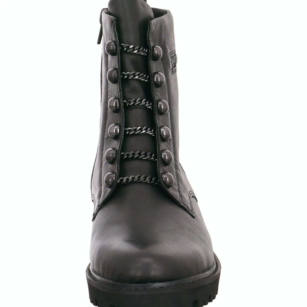 Highlights sind die imitierte Schnürung mit rockigen Ketten und Nieten und der Deko-Zipper am Schaft.