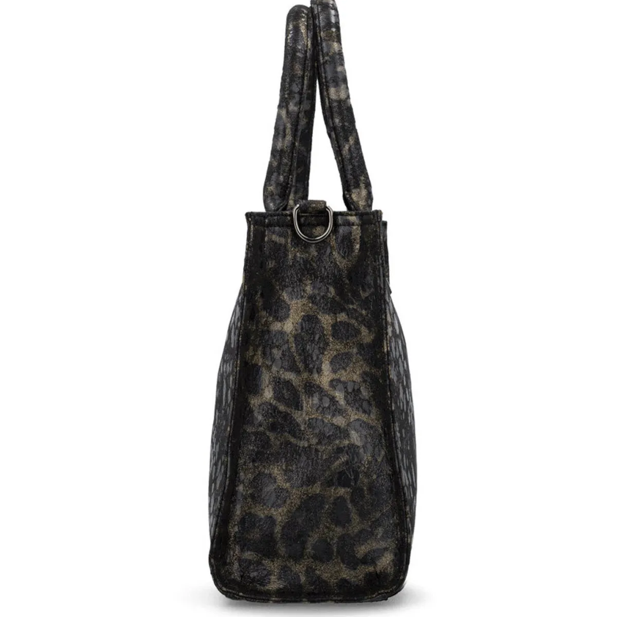 Gefertigt aus softem Kunstleder mit textiler Haptik in Schwarz Gold, ist sie mit einem schönen Leomuster versehen. Das geräumige Format bietet Platz für alle Dinge, die dich im Alltag begleiten sollen.