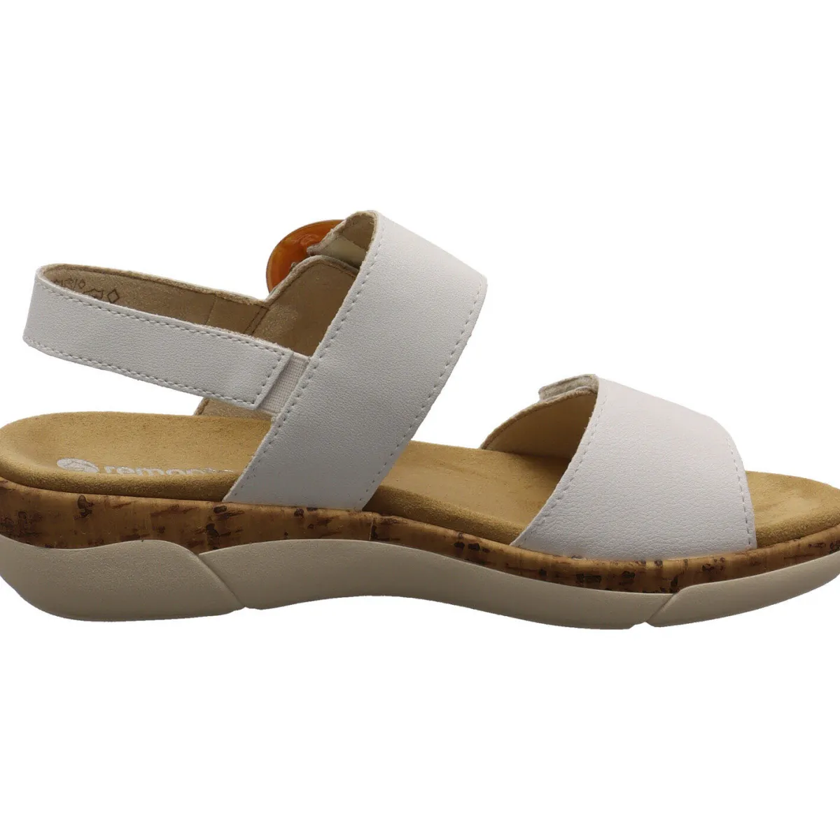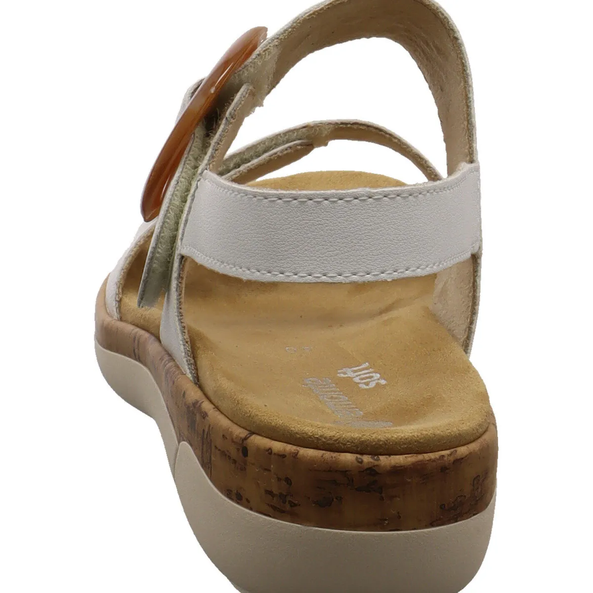 Das beschichtete Echtleder in Weiß wird durch die Zierschnalle in Bernstein Farben am Knöchelriemen toll in Szene gesetzt. Darunter verbirgt sich ein Klettverschluss. Auch am vorderen Riemen findest du einen und kannst so den Schuh optimal an deinen Fuß anpassen. Ein kleiner Dehngummi am Fersenriemen hilft zusätzlich bei einem leichten Einstieg. Die Remonte Soft Innensohle ist angenehm weich gepolster und als Wechselfußbett gearbeitet, so kannst du deine eigenen Einlagen verwenden.