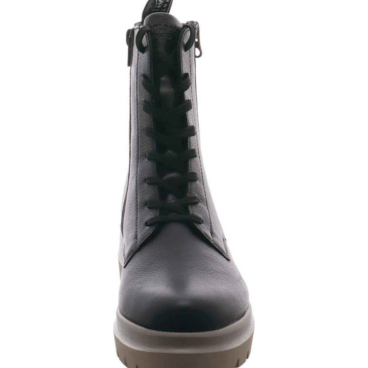 Das Wechselfußbett ermöglicht die Verwendung eigener Einlagen und die grob profilierte Laufsohle in hellem Grau mit Blockabsatz sorgt für sicheren Halt auf allen Untergründen.