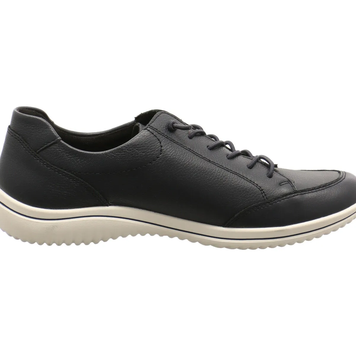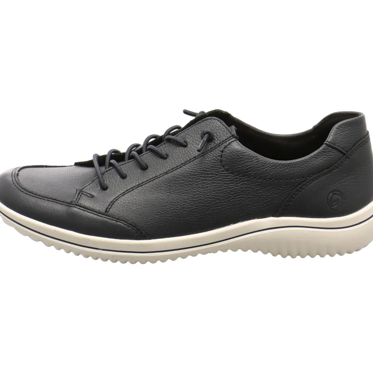 Das Obermaterial wurde aus weichem Echtleder in Blau gefertigt. Durch die Gummischnürung ist der Einstieg ganz leicht. Der Schaft ist dabei angenehm gepolstert. Auch hier findest du die bewährte Remonte Soft Innensohle. Diese ist natürlich als Wechselfußbett gearbeitet, so kannst du eigene Einlagen verwendet. Zusätzlich ist sie im vorderen Bereich perforiert und sorgt damit für ein angenehmes Klima im Schuh.