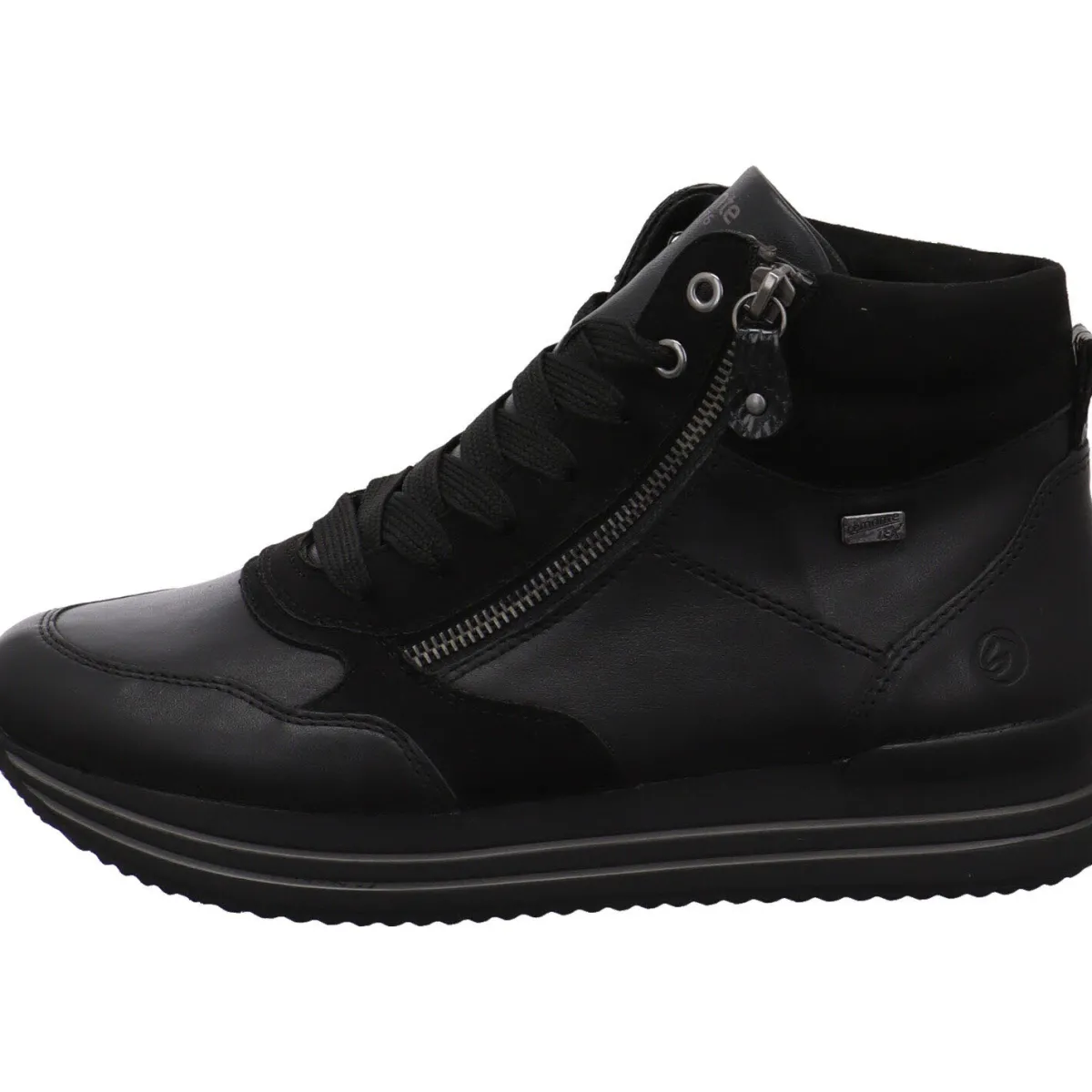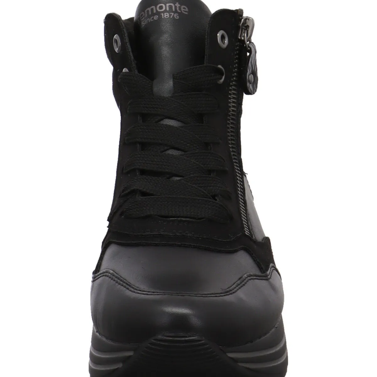 Der seitliche Reißverschluß hilft bei einem leichten Einstieg und mit der Schnürung kannst du ihn genau auf deine Bedürfnisse anpassen. Der Schaft aus Textil ist angenehm weich gepolstert. Die Remonte Soft Innensohle ist als Wechselfußbett gearbeitet und besonders atmungsaktiv, dank der Perforierung im Vorderfuß Bereich. Der Schuh ist mit der Remonte Tex Ausstattung versehen. So meistert er auch regnerische Herbst Tage, da er wasserabweisend ist. Die sportlich geformte Laufsohle hat einen leichten Grip und passt super zum Look.