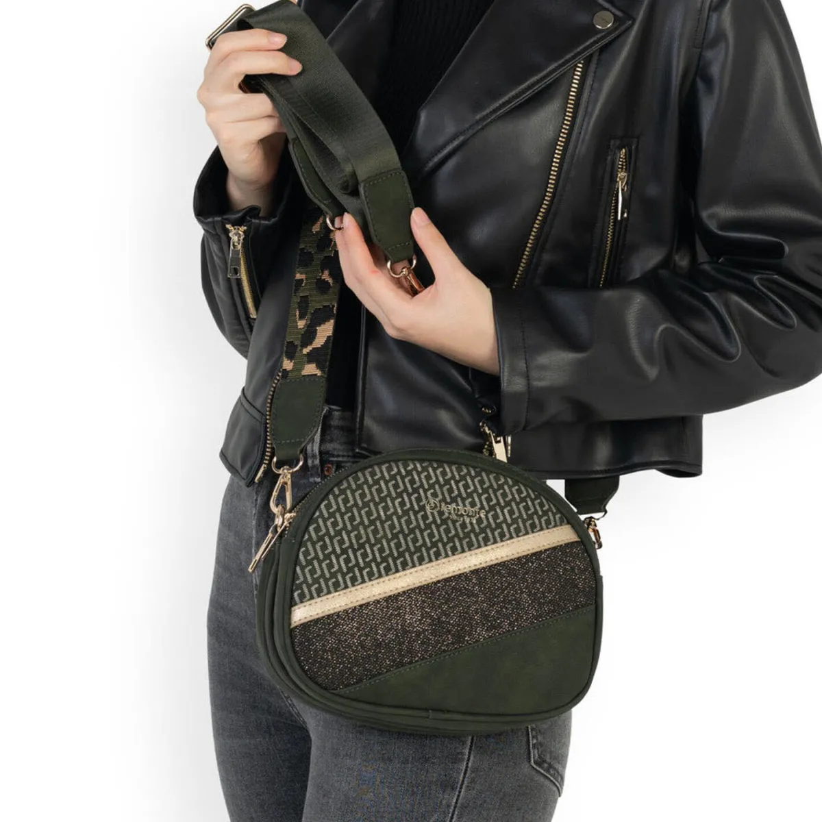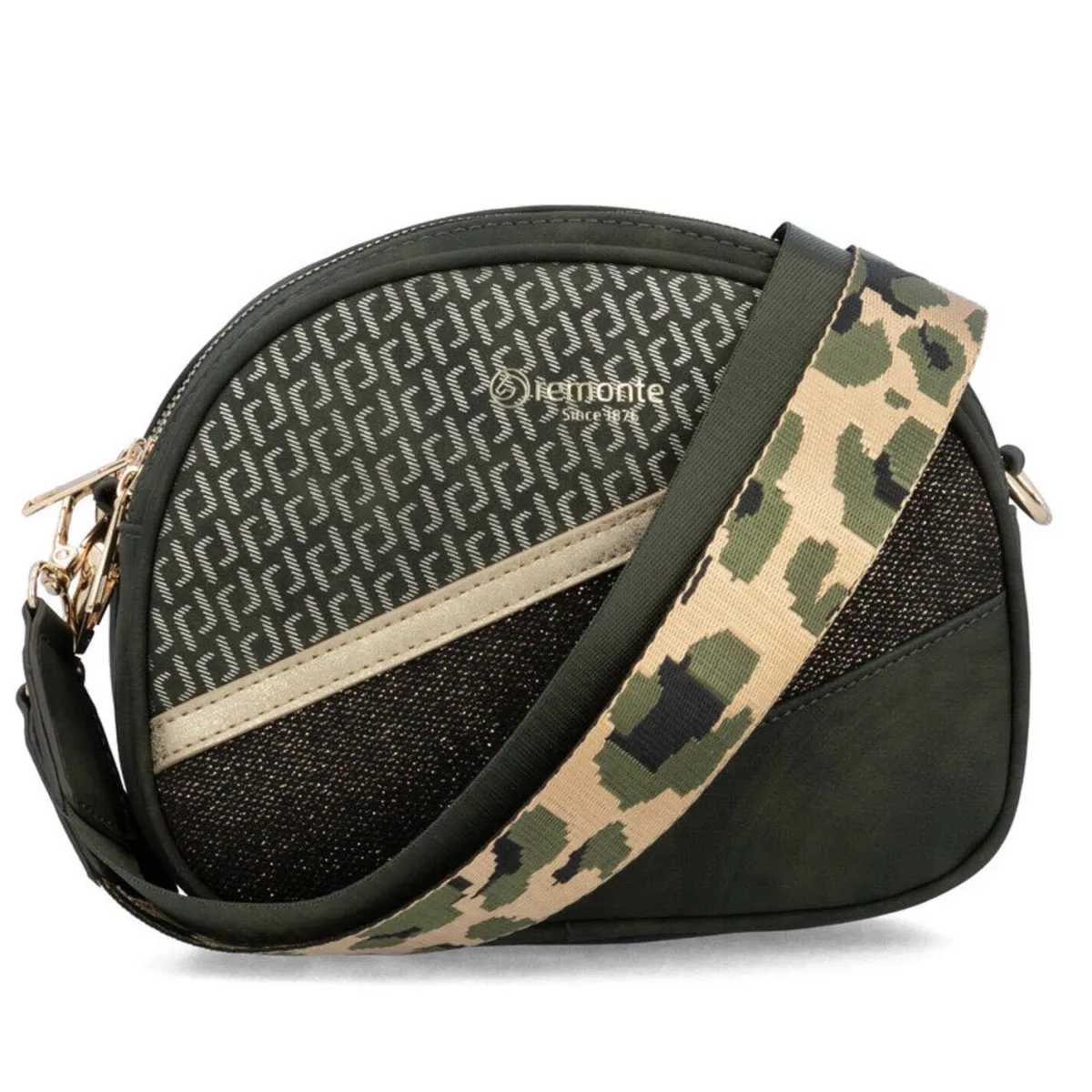 Das Obermaterial wurde aus pflegeleichtem Kunstleder in Schwarz Grün gefertigt und ist mit einer Overlaystruktur und einem in Gold schimmernden Part mit Glitzer versehen.