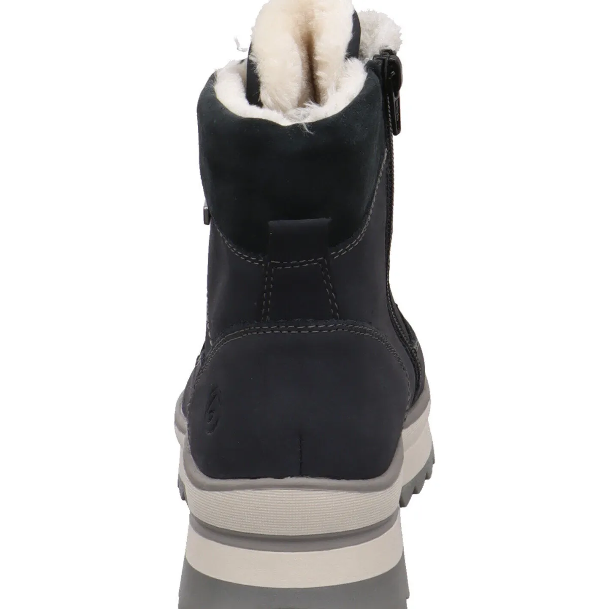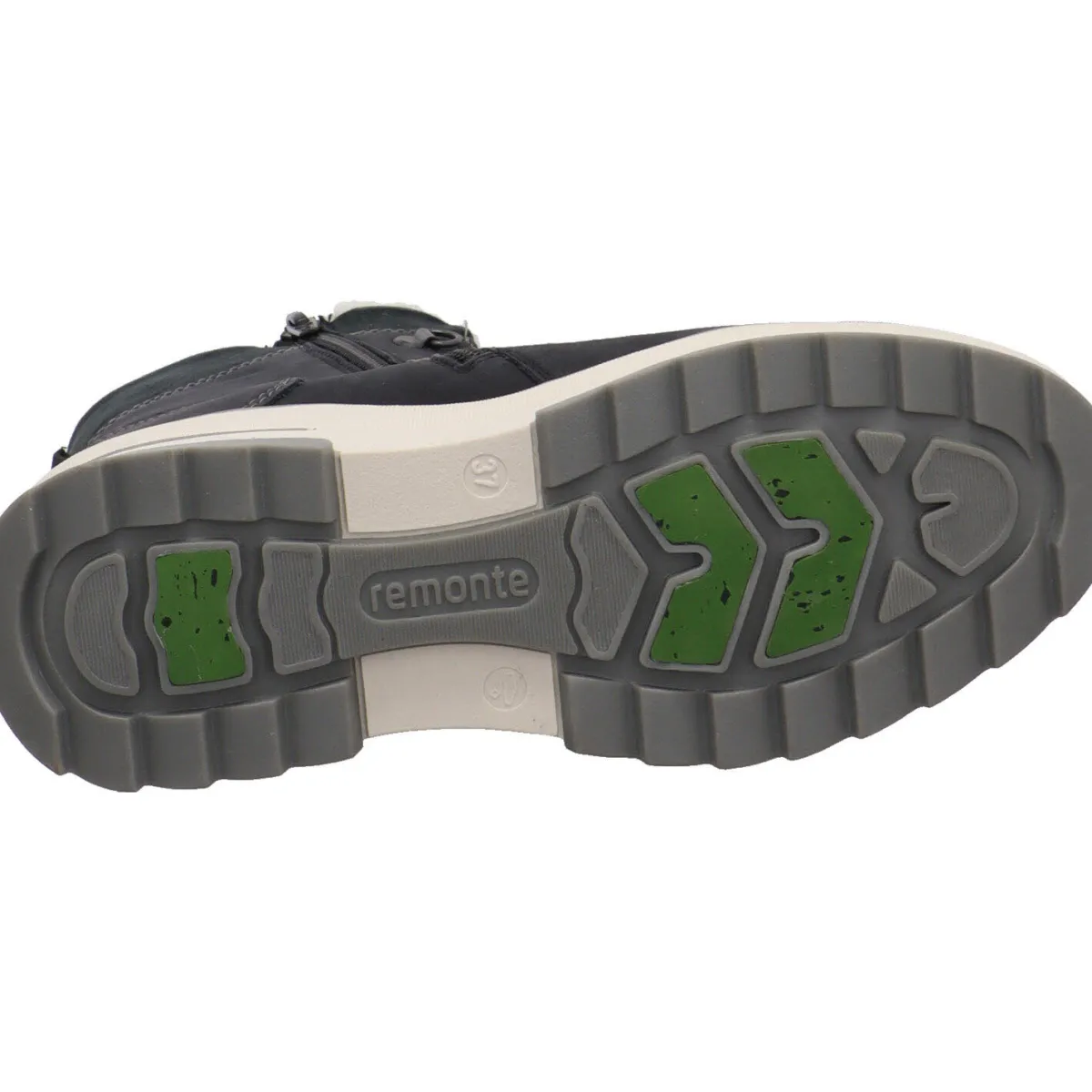Die Remonte Soft Innensohle, ist dabei angenehm weich und komfortabel. Ein weiteres, sehr nützliches Highlight findest du in der Laufsohle. Diese ist gut profiliert und hochgezogen, zudem ist sie mit Fieber-Grip ausgestattet. Sie verfügt über kleine Fiberglas Areale, diese mikroskopisch kleinen Glasfasern rauen die Struktur der Sohlenoberfläche auf und wirken auf eisglatten Böden rutschhemmend.