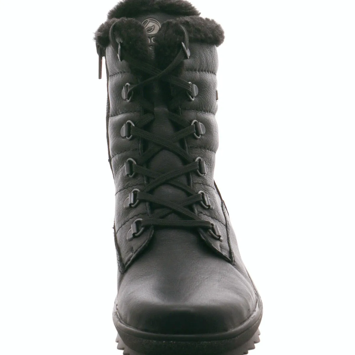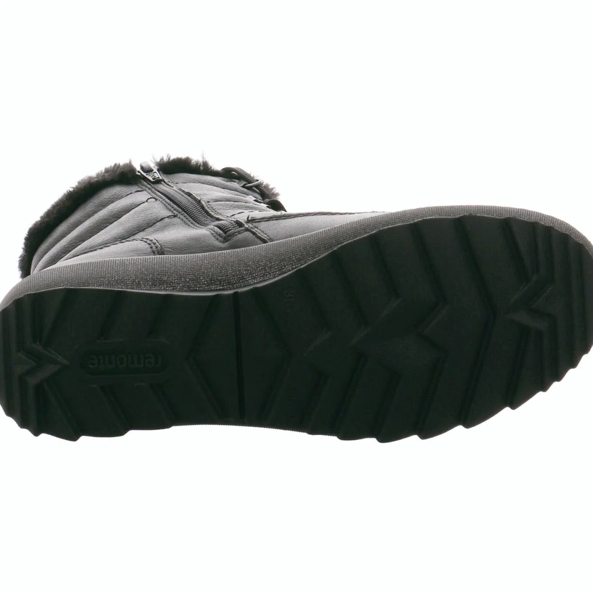 Die sportive Laufsohle ist extra leicht und flexibel. Sie sorgt damit für einen hohen Komfort beim Gehen sowie für eine gute Bodenhaftung. Außerdem macht die Remonte Tex Membran den Winter Stiefel wasserabweisend und winddicht bei gleichzeitiger Atmungsaktivität. Damit die Membran auch wirklich für trockene Füße sorgt, achte bitte auf die richtige Auswahl der Socken, diese sollten nicht aus reiner Baumwolle bestehen. Beim Tragen reiner Baumwollsocken kannst du nämlich trotzdem nasse Füße bekommen, allerdings nicht vom Regen oder Schnee sondern vom Tropenklima in den Schuhen. Die Innensohle ist zudem als Wechselfußbett gearbeitet.